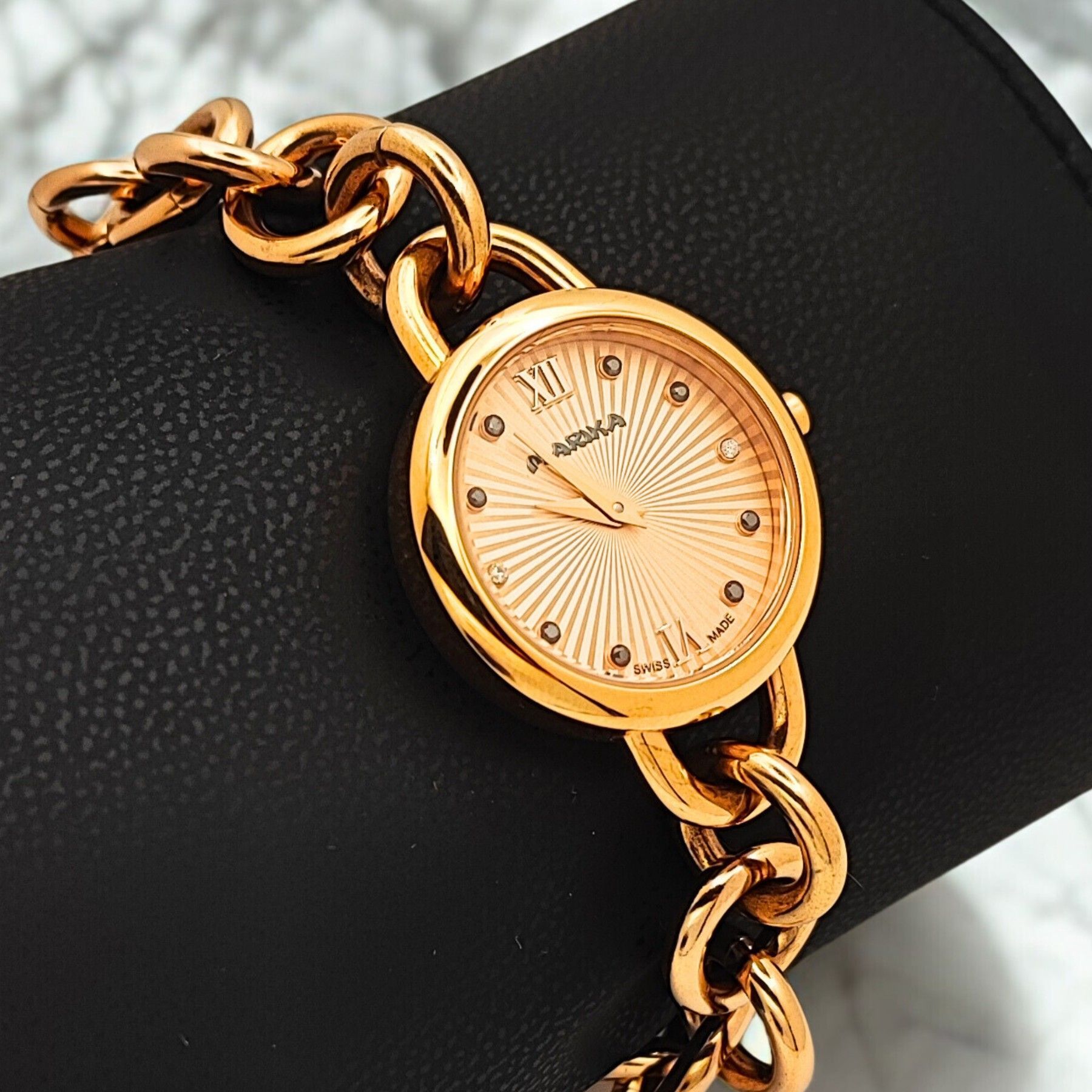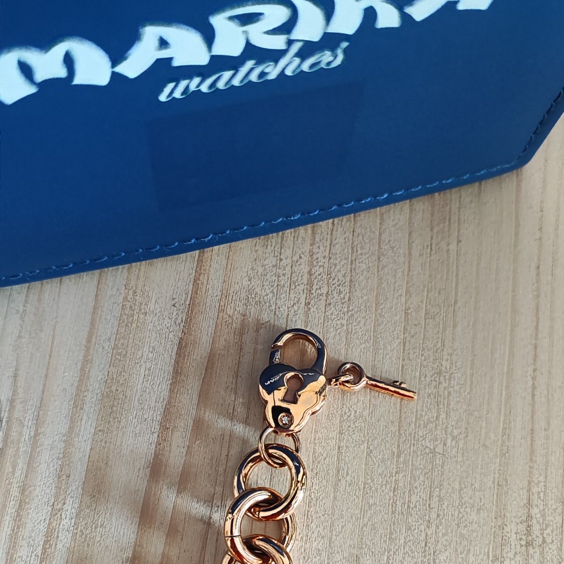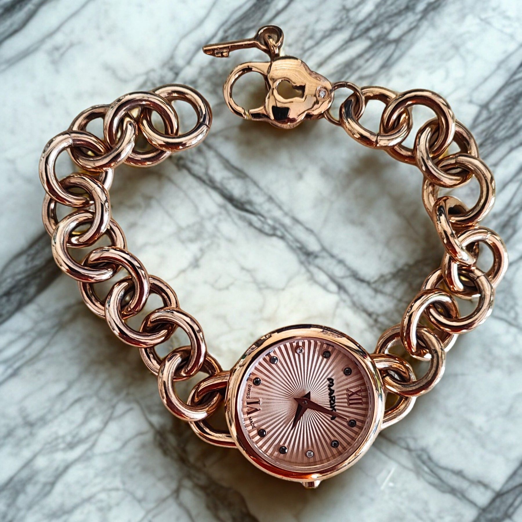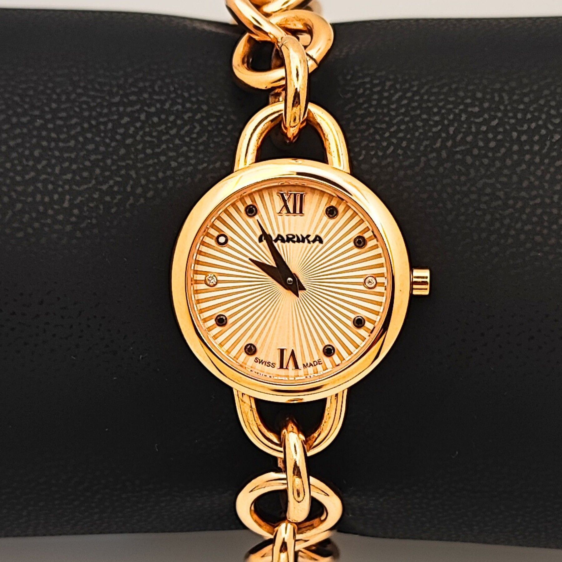 Swiss Made - Verschluss mit Schloss und Schlüssel - Marika Damenuhr Con Diamanti Naturali – Swiss Made: Zeitlose Eleganz trifft auf höchste Präzision Beschreibung: Entdecken Sie die zeitlose Schönheit dieser Damenuhr von Marika. Das zarte Roségoldgehäuse und das Zifferblatt mit weißen und schwarzen