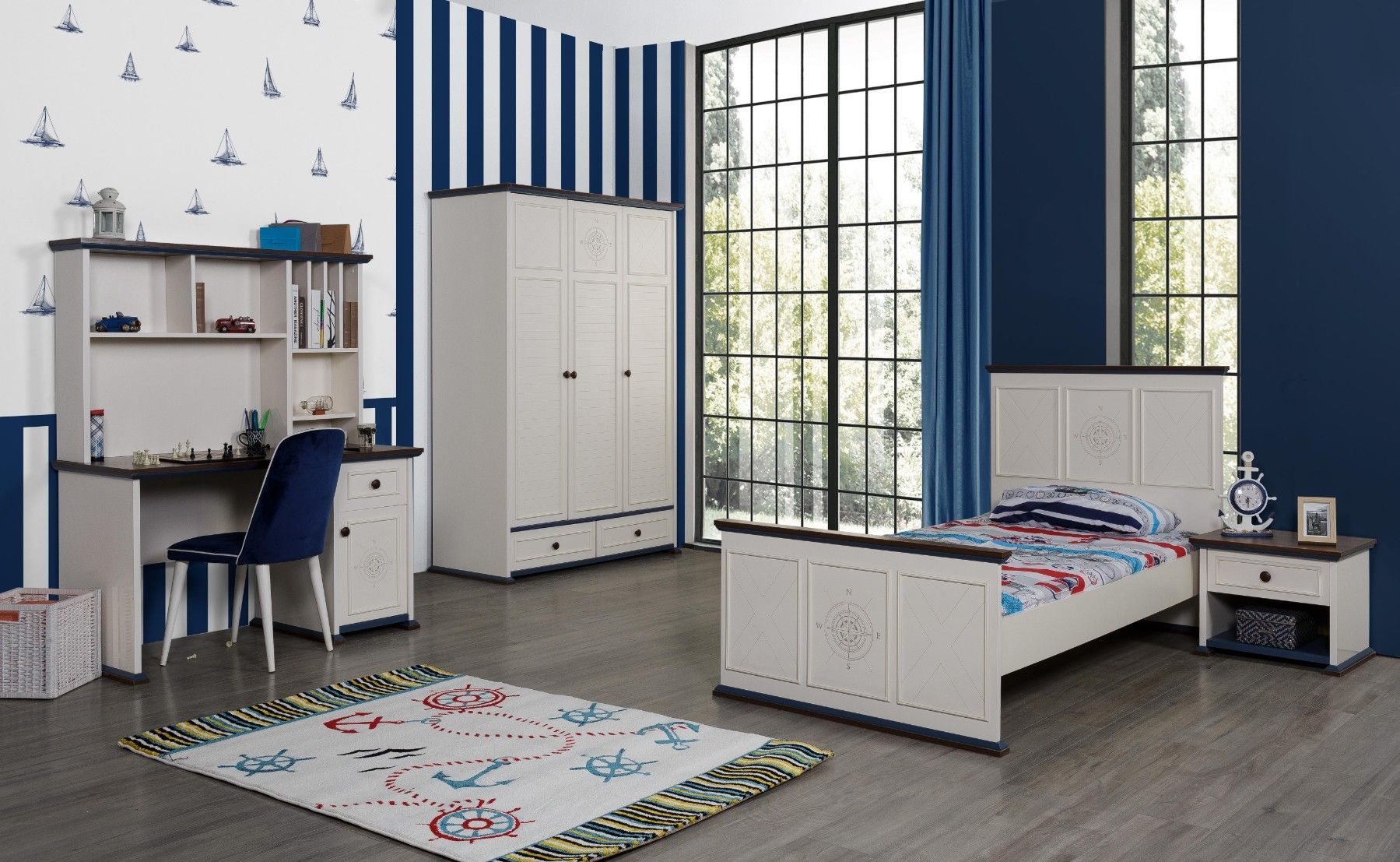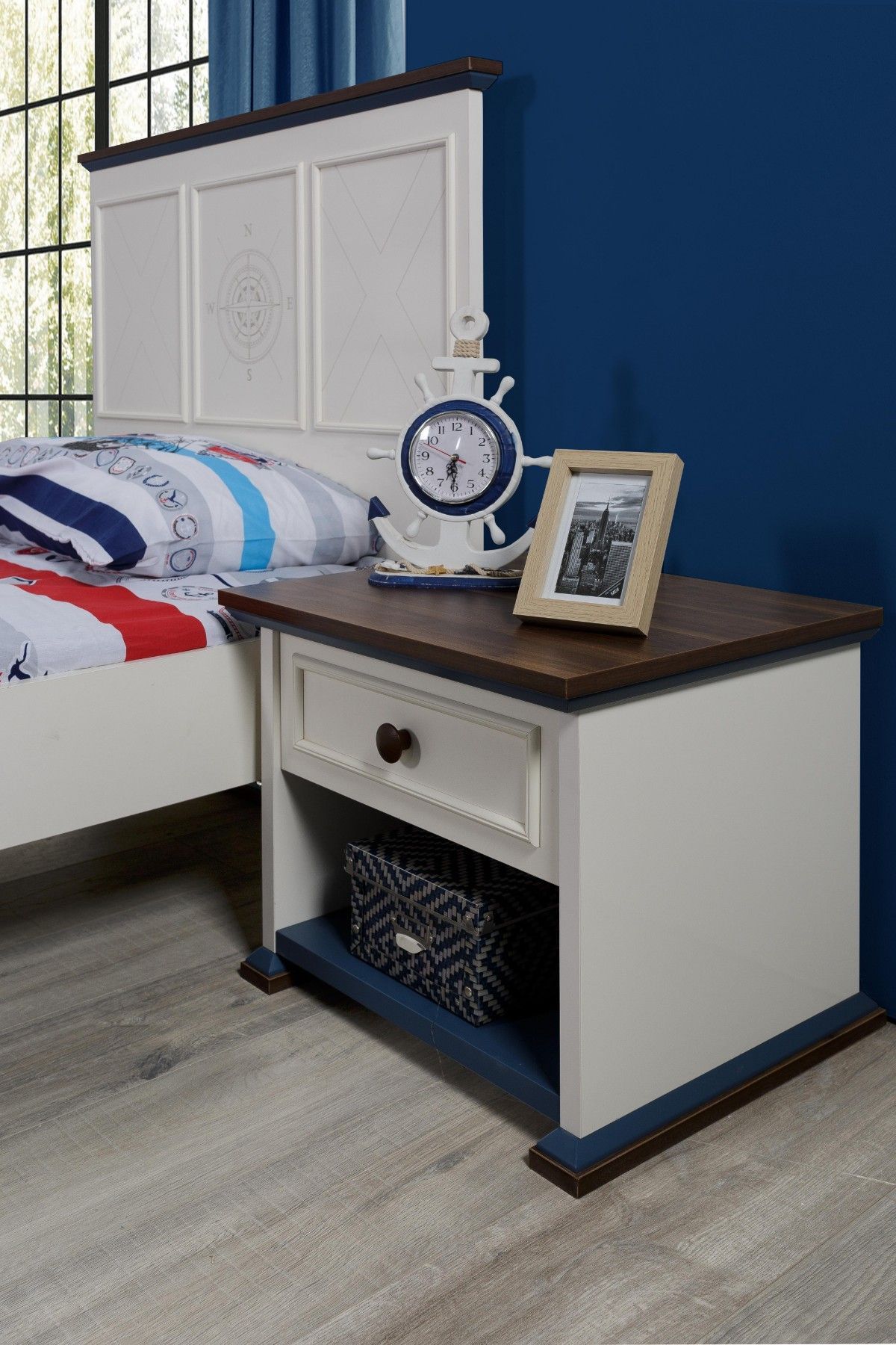 Marina Nachtkonsole für Kinder in Weiß / Blau