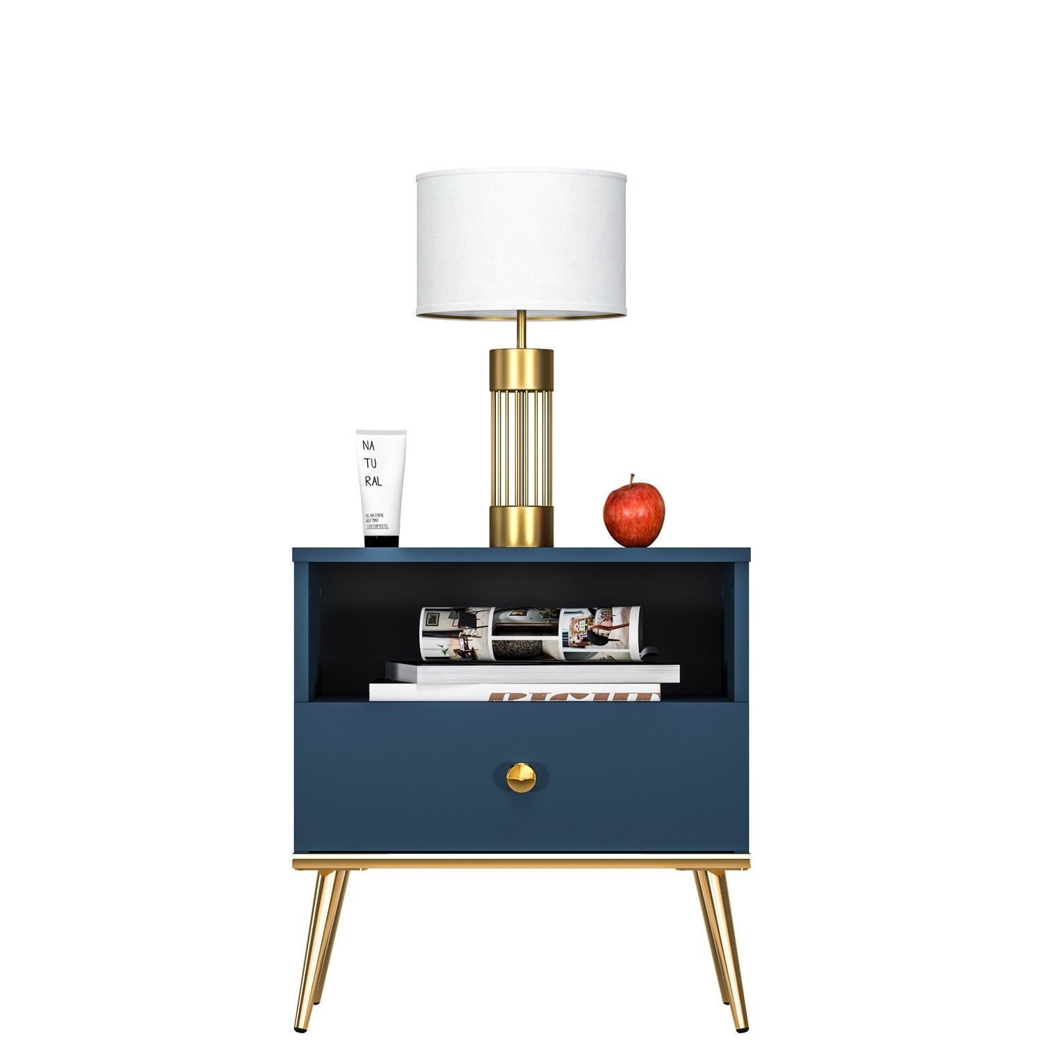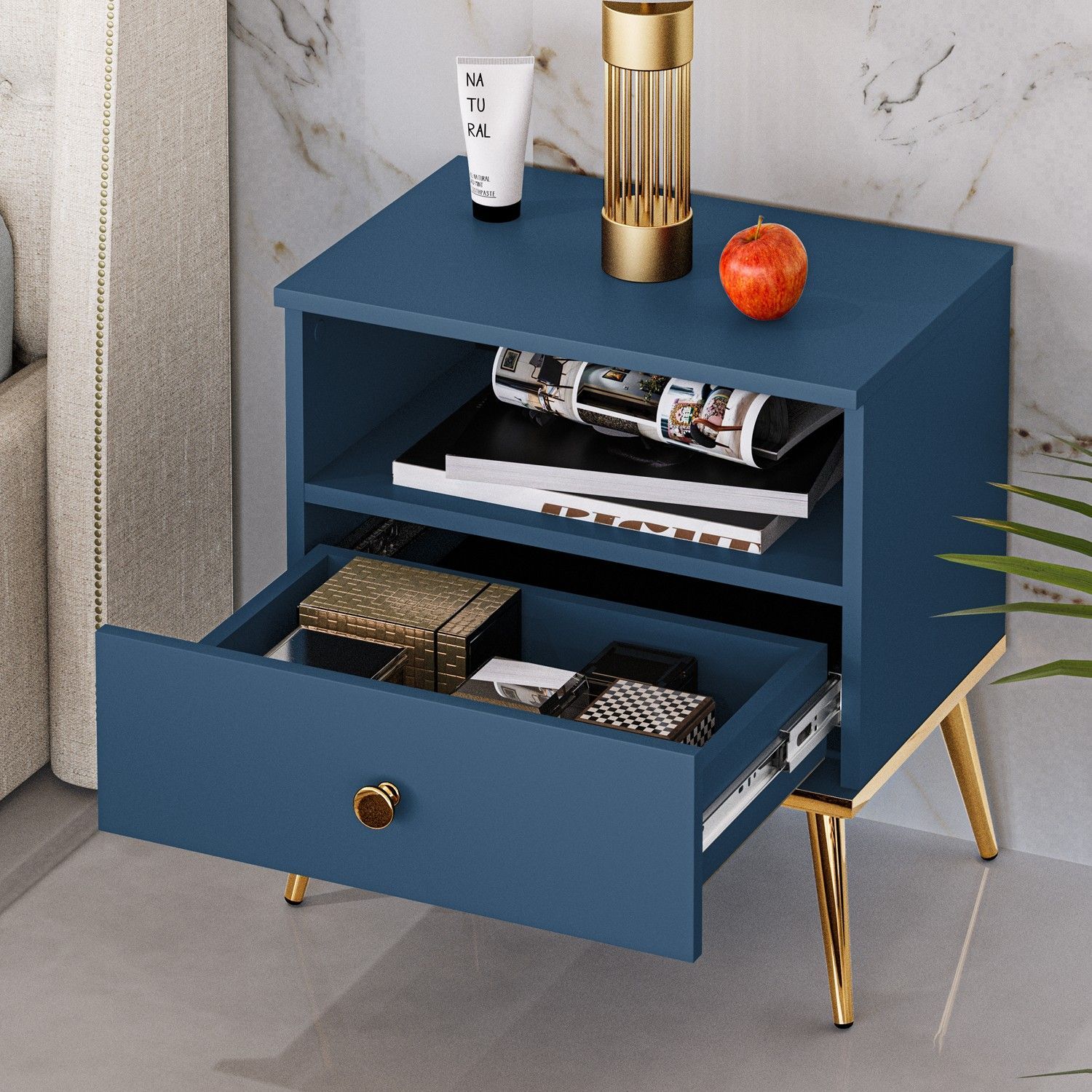 Marine Nachttisch 06, Marineblau Matte, Kleiner Nachttisch mit Schublade