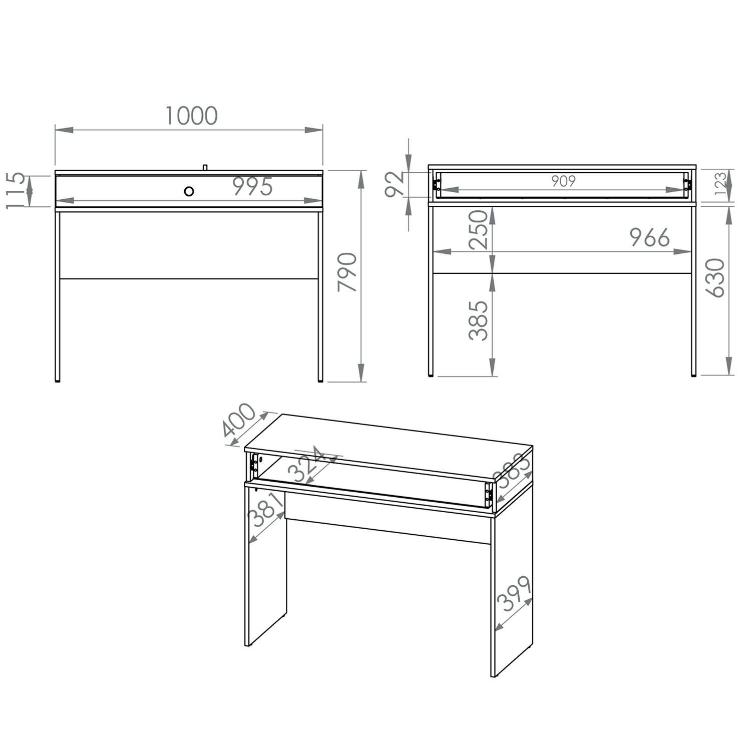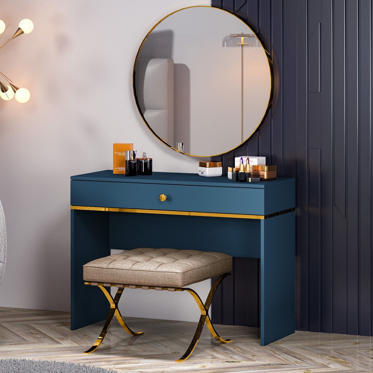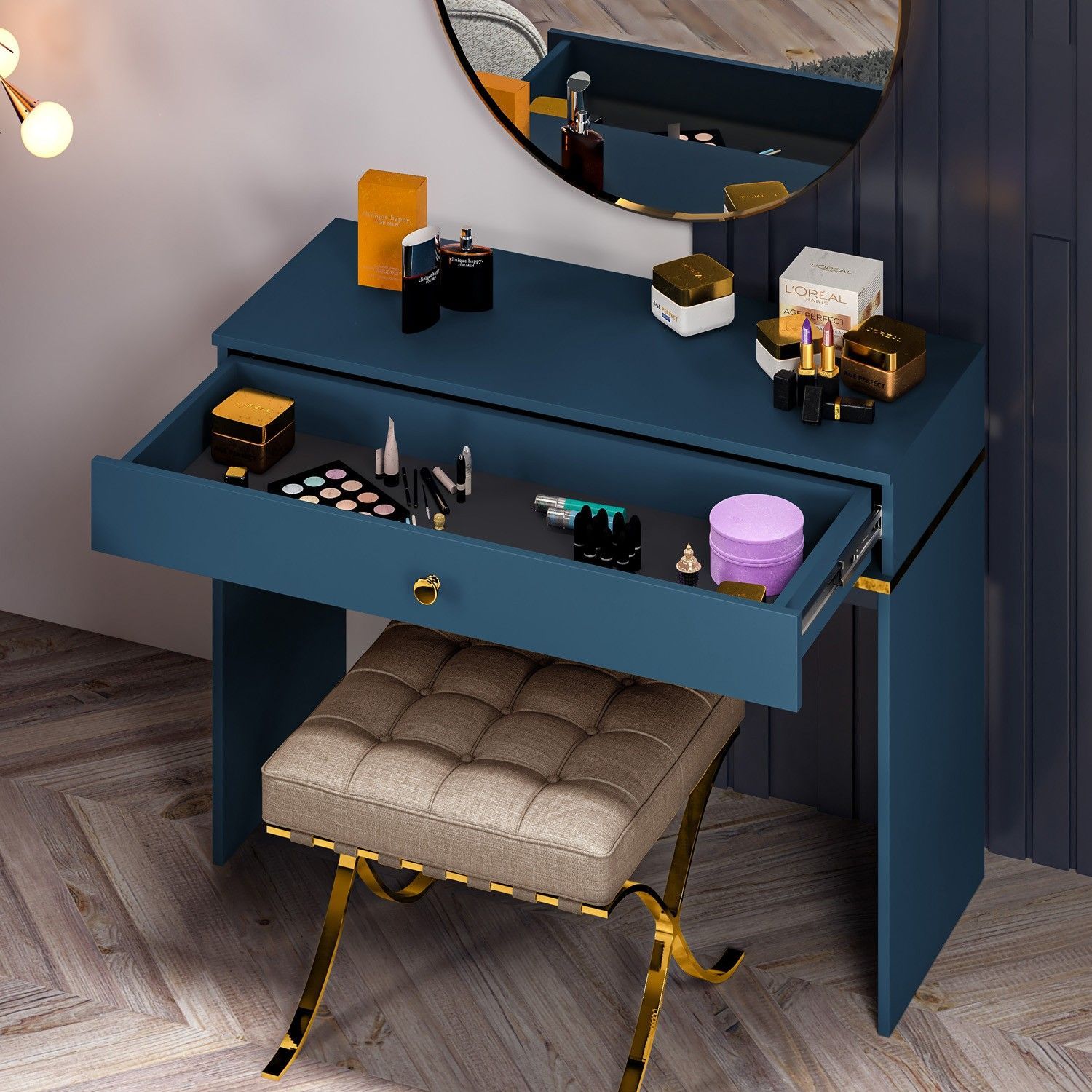 Marine Schminktisch 09 mit Schublade, Marineblau Matte, für den Flur, Schlafzimmer