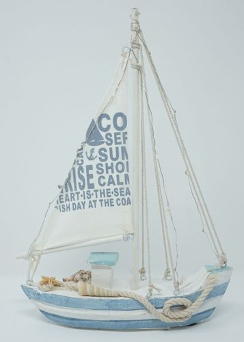 Maritim Deko Standmodell Segelschiff Holzschiff Fischerboot 28x21 cm Beleuchtung