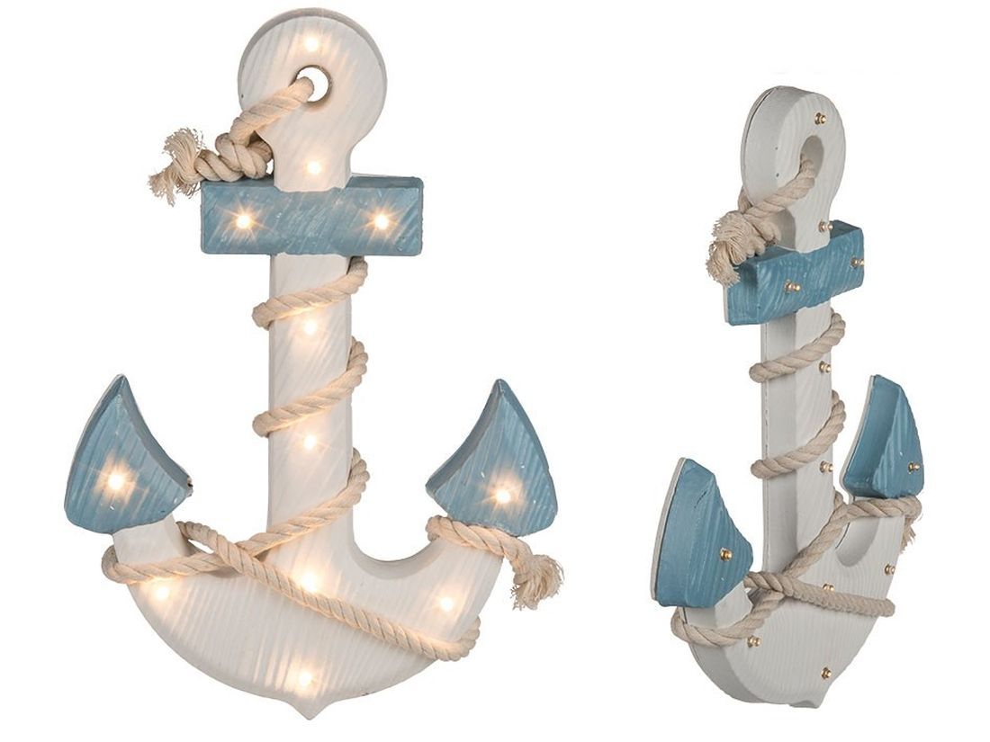 maritime Shabby Dekoration Holzanker mit Seil LED Beleuchtung Boot Schiff Anker