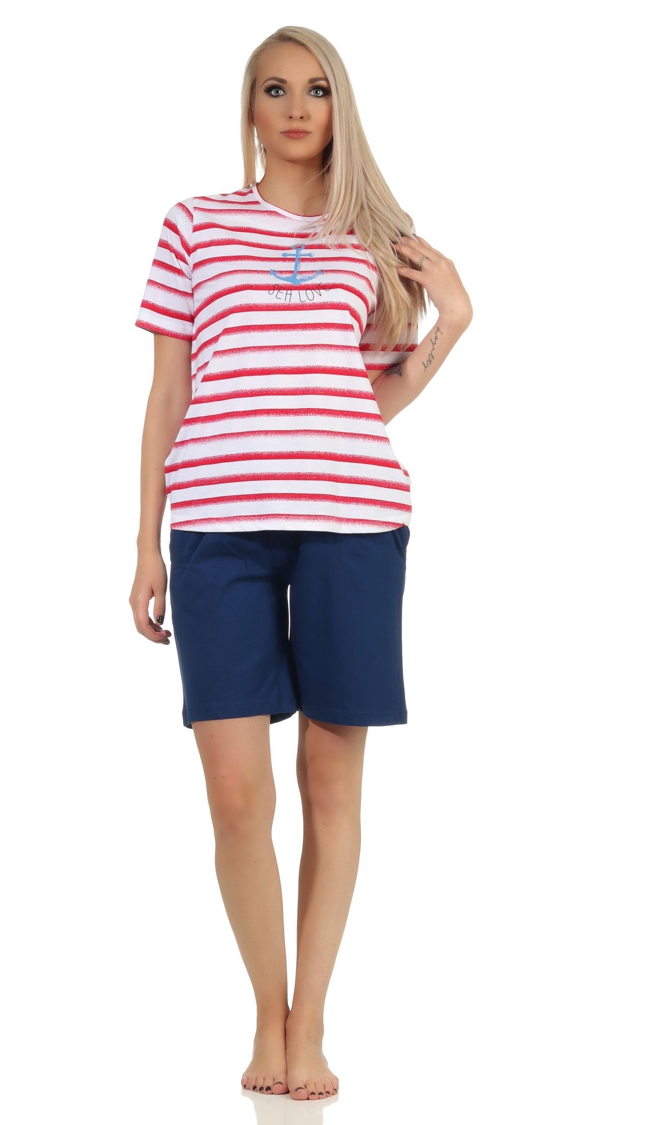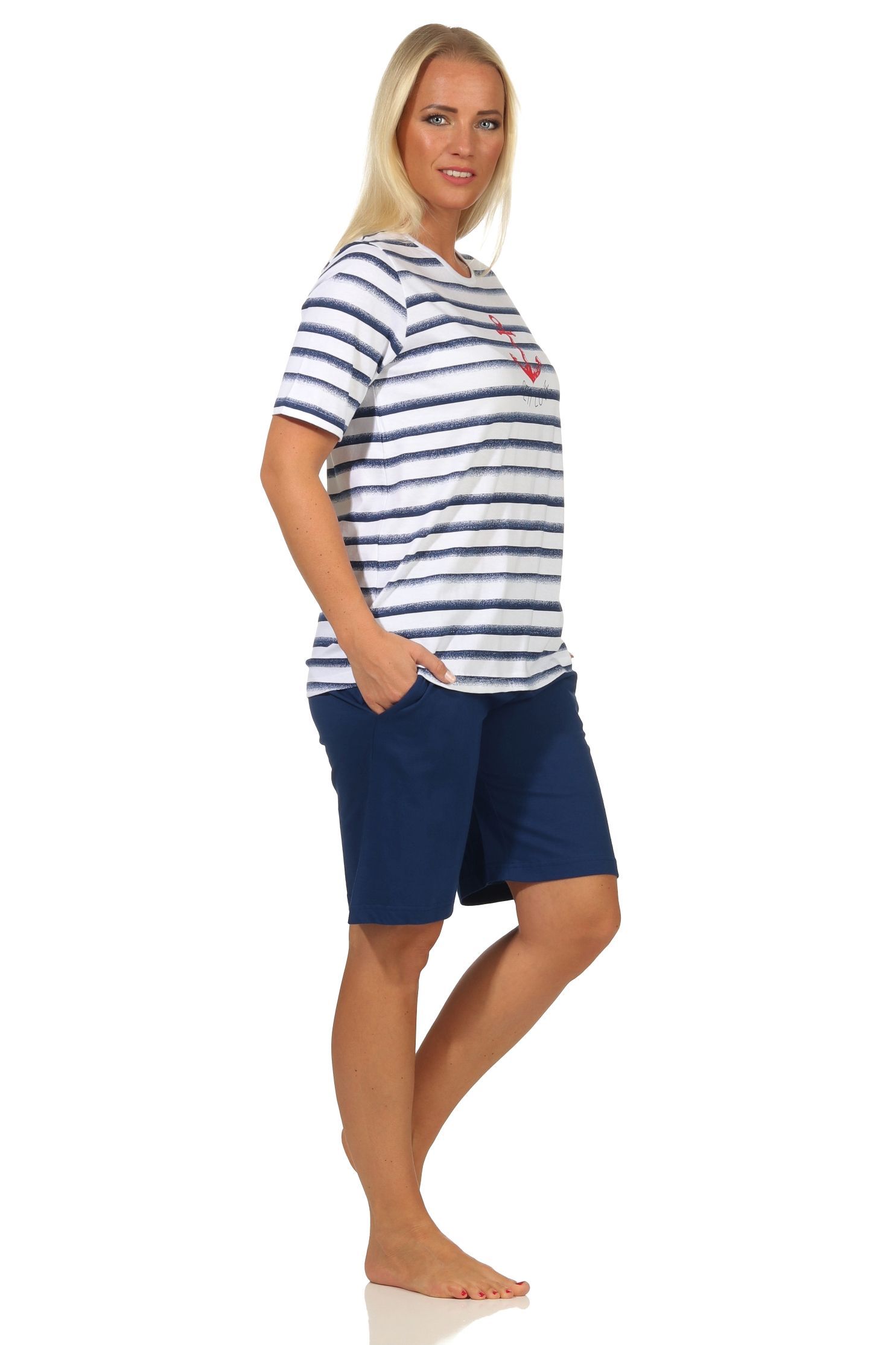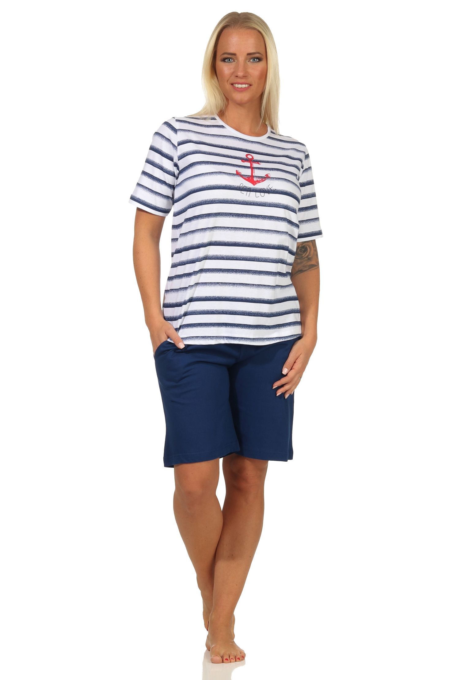 Maritimer Damen kurzarm Schlafanzug Shorty, auch in Übergrössen