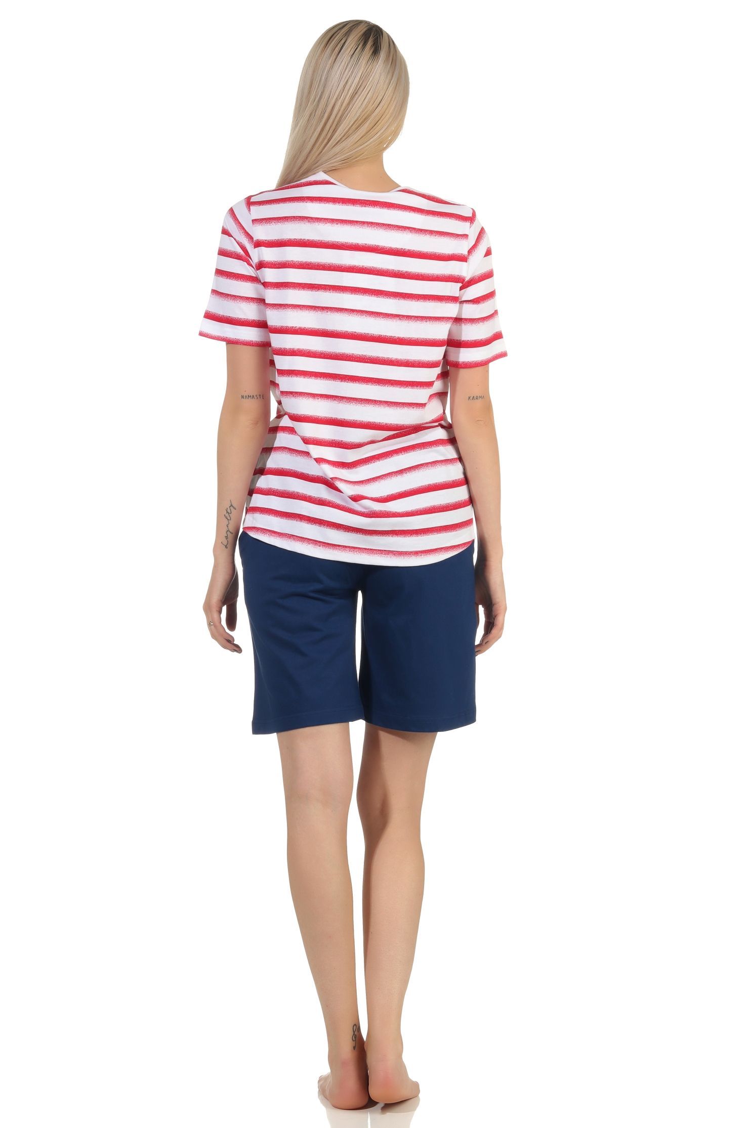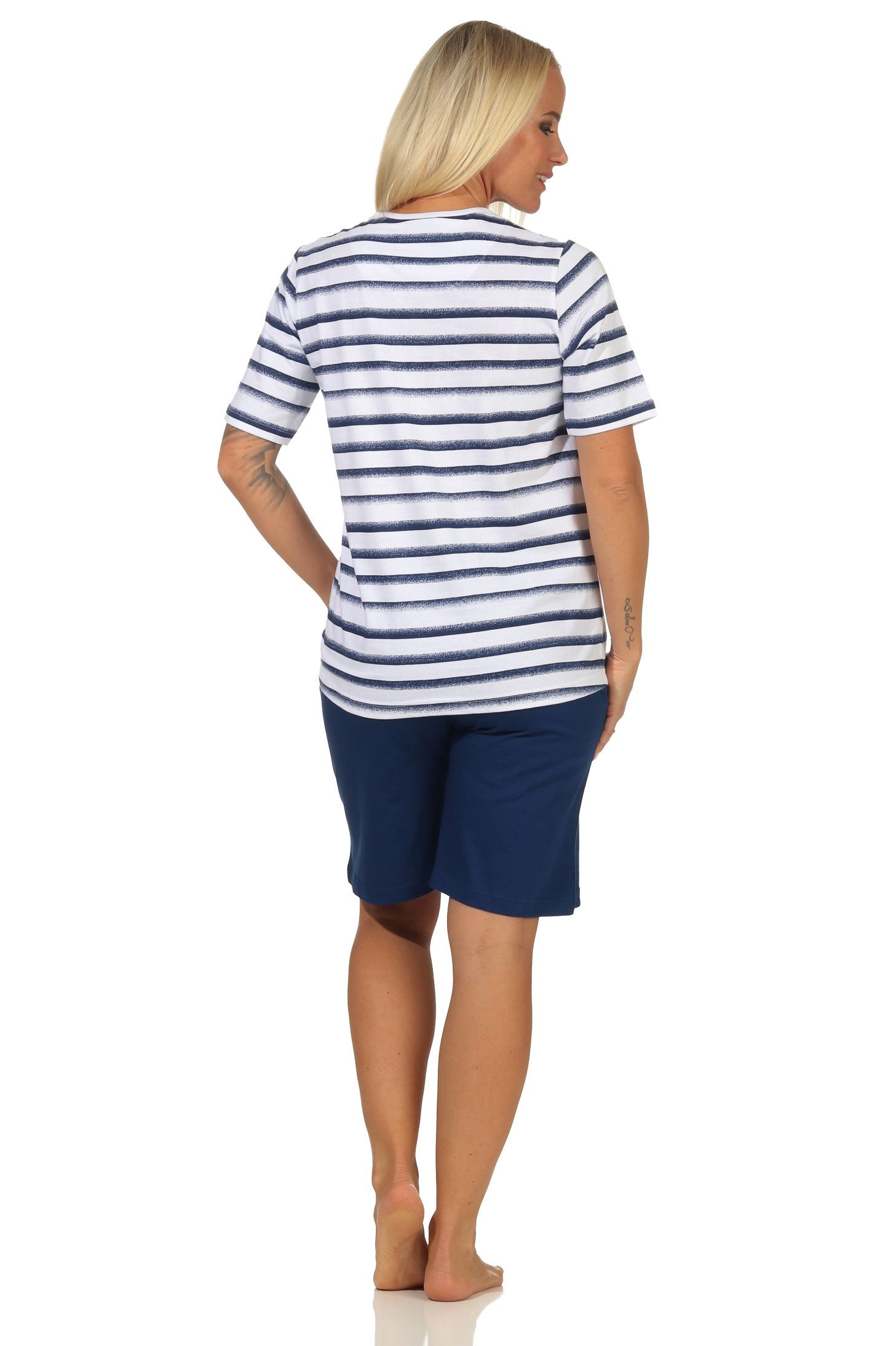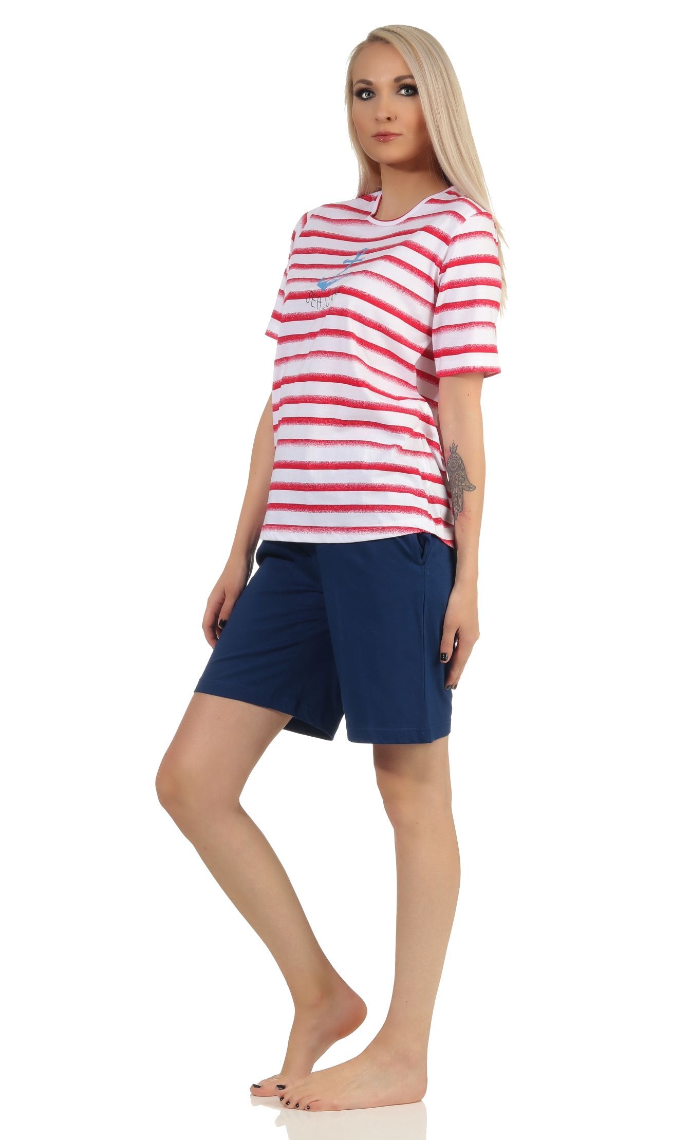 Maritimer Damen kurzarm Schlafanzug Shorty, auch in Übergrössen