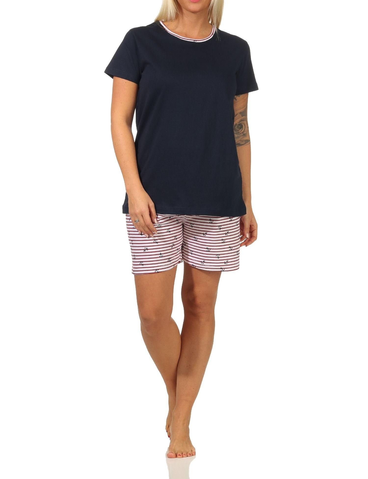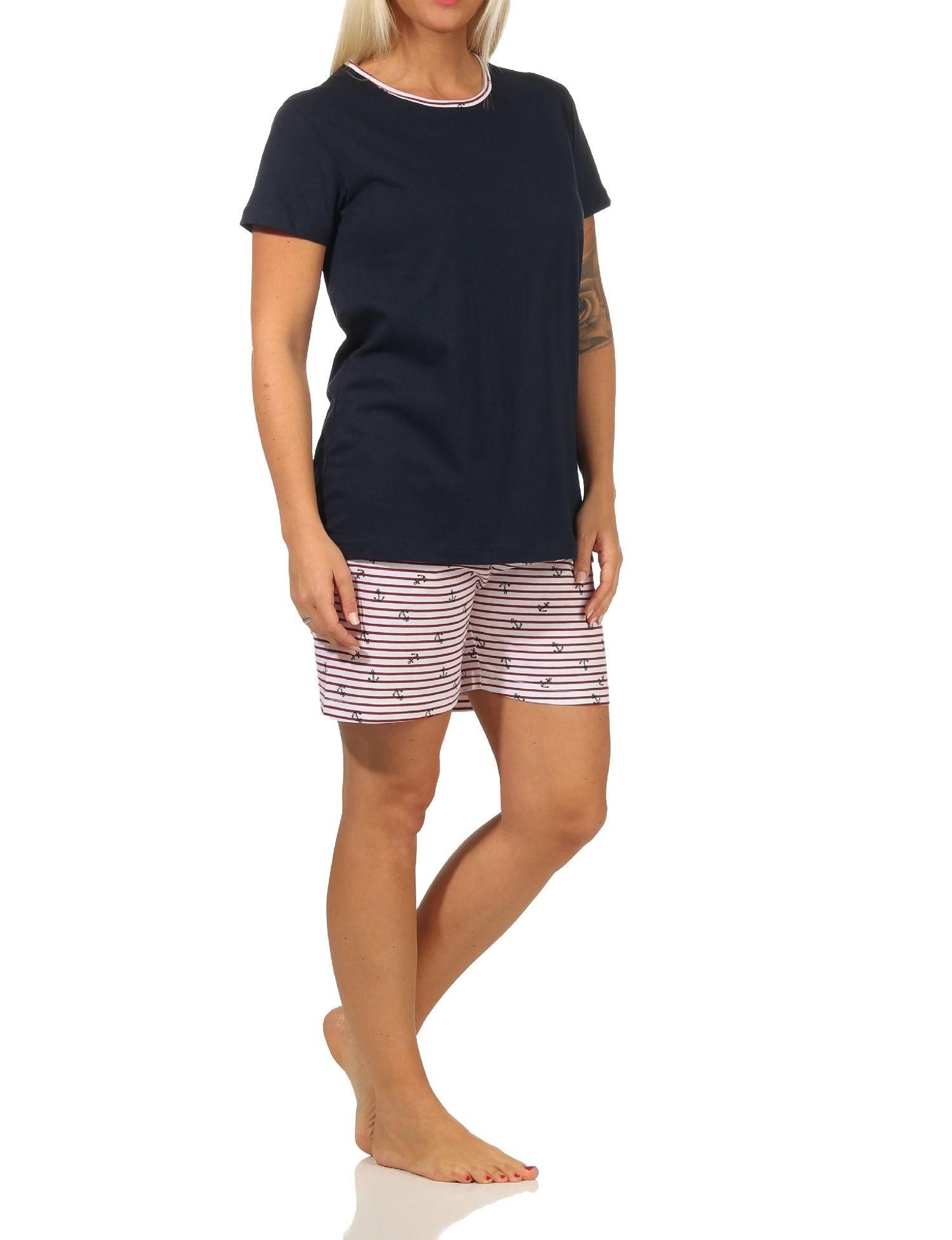Maritimer Damen Shorty kurzarm Schlafanzug Pyjama, Hose gestreift - 112 205 10 717