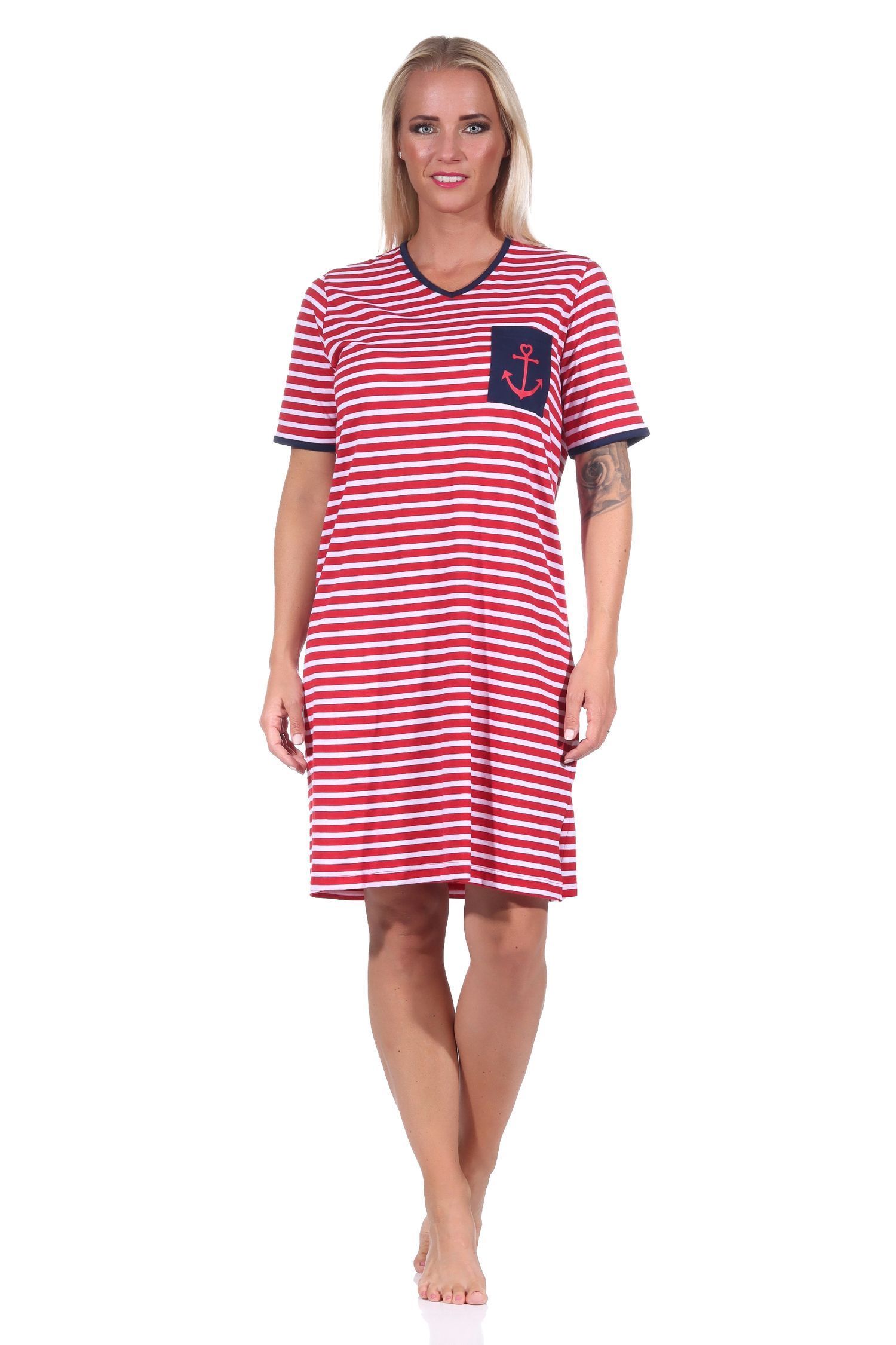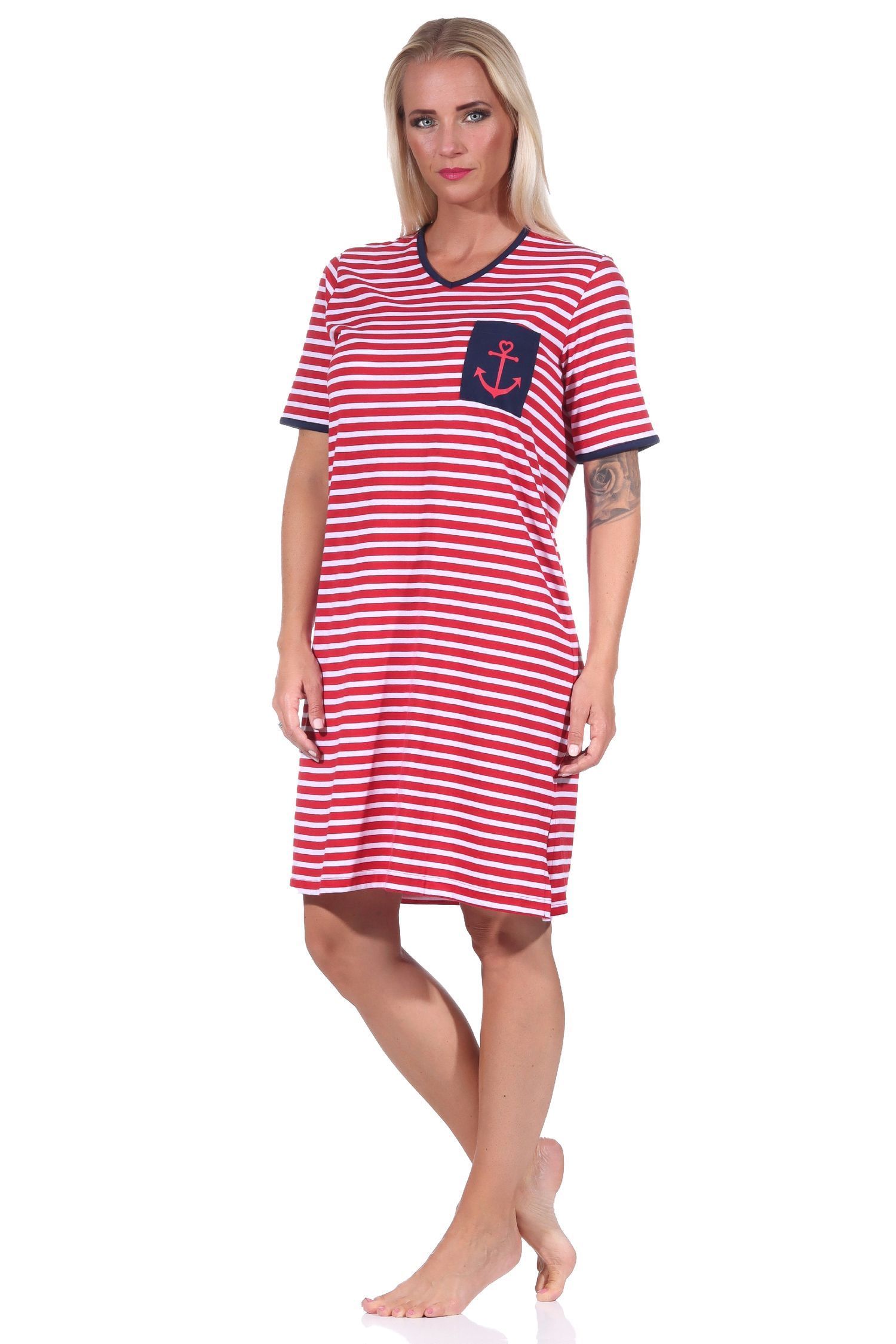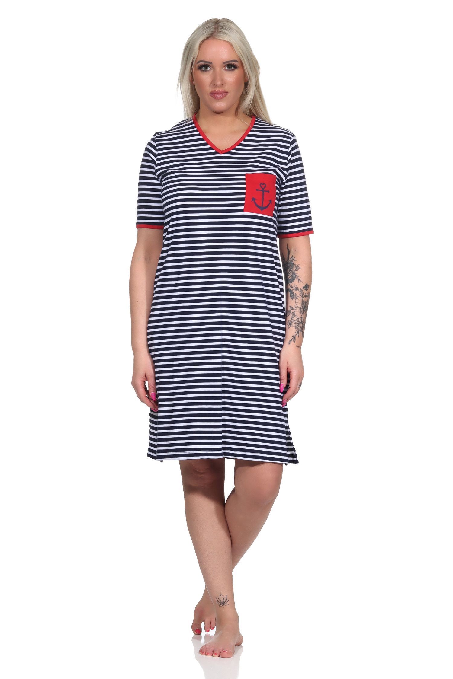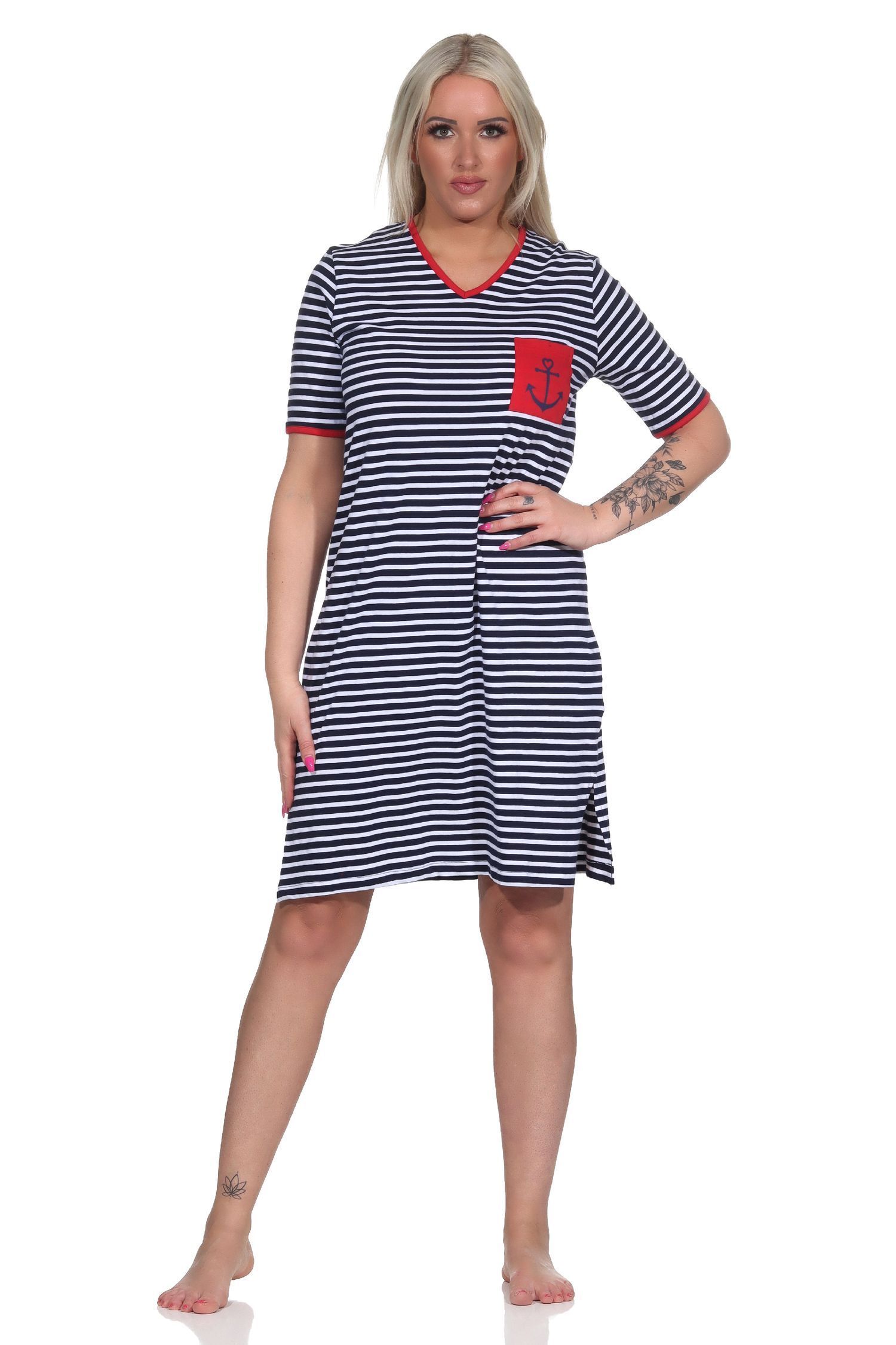 Maritimes kurzarm Damen Nachthemd mit Anker Motiv, auch in Übergrösse -122 214 90 920