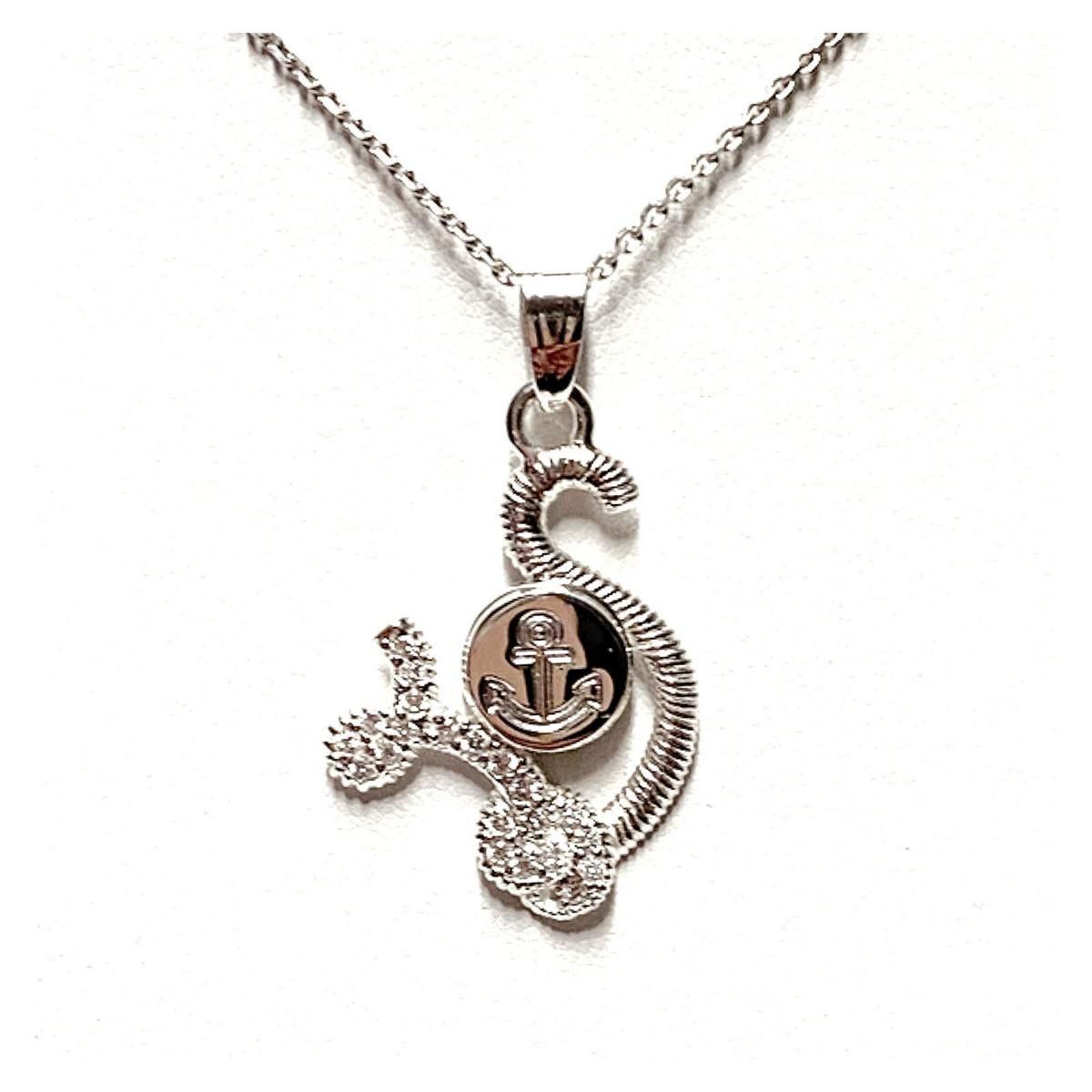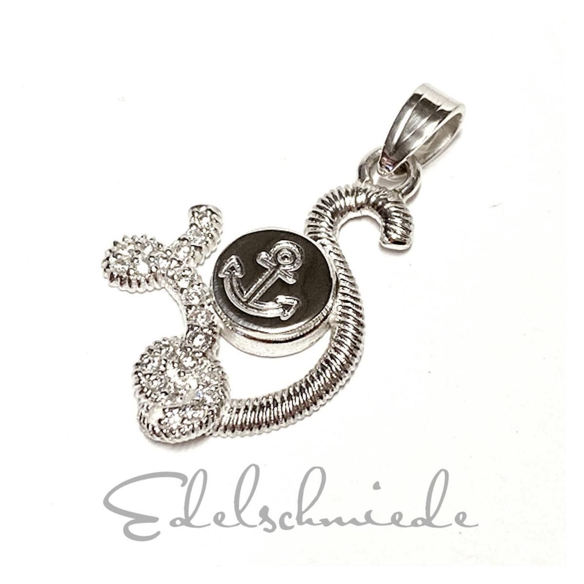 maritimes Seil als Kettenanhänger in 925/- Sterling Silber mit Zirkonia und Anker