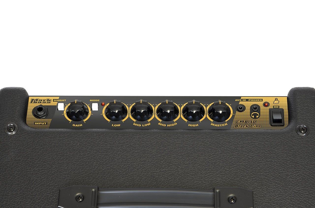 Markbass CMB101 Black Line 40 Watt Bass Combo Lautsprecher: 10'' Markbass Regler: Gain, Master, Low, Mid Low, Mid High, High Bright Schalter Mode Schalter ( Klang- Sättigung ) Kopfhörer Ausgang Stereo Klinke 3,5 mm Preamp Out Klinke 6,3 mm Aux Eingang Stereo Klinke 3,5 mm Gewicht: 9,7 kg Abmessungen