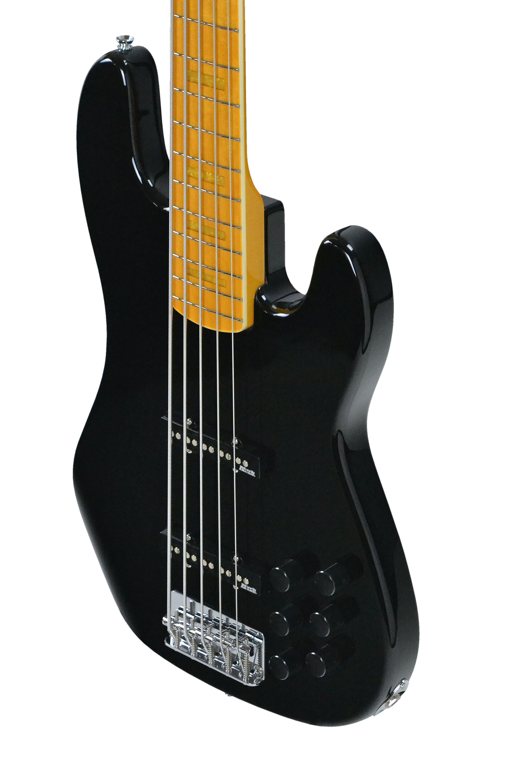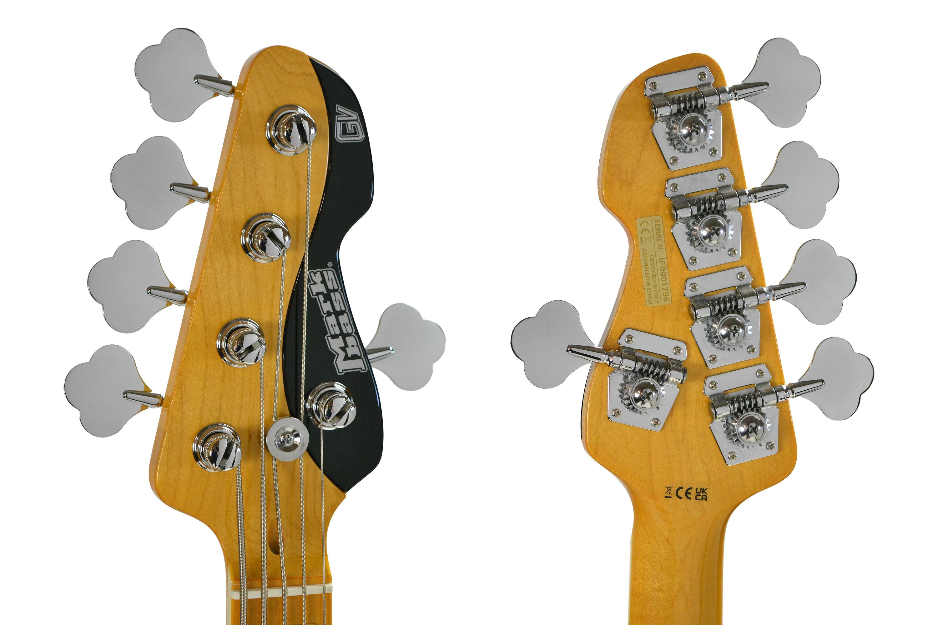 Markbass GV5 Gloxy Val - Black Korpus: Linde Hals: Ahorn Halsprofil: Comfort 'C' Griffbrett: Ahorn Mensur: 86,4 cm ( 34' ) Sattelbreite: 45 mm Sattel: Kunststoff 20 Medium Small Bünde Tonabnehmer: Markbass JJ-Style 4 Single Coils Regler: 3-Band Equalizer ( Bass, Mitten, Höhen) 2x Volume 1x Tone ( Pu