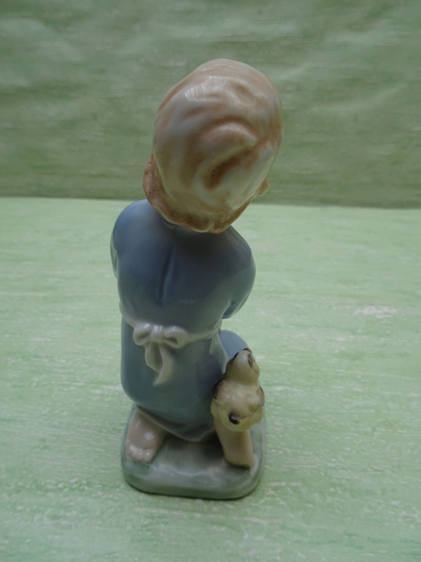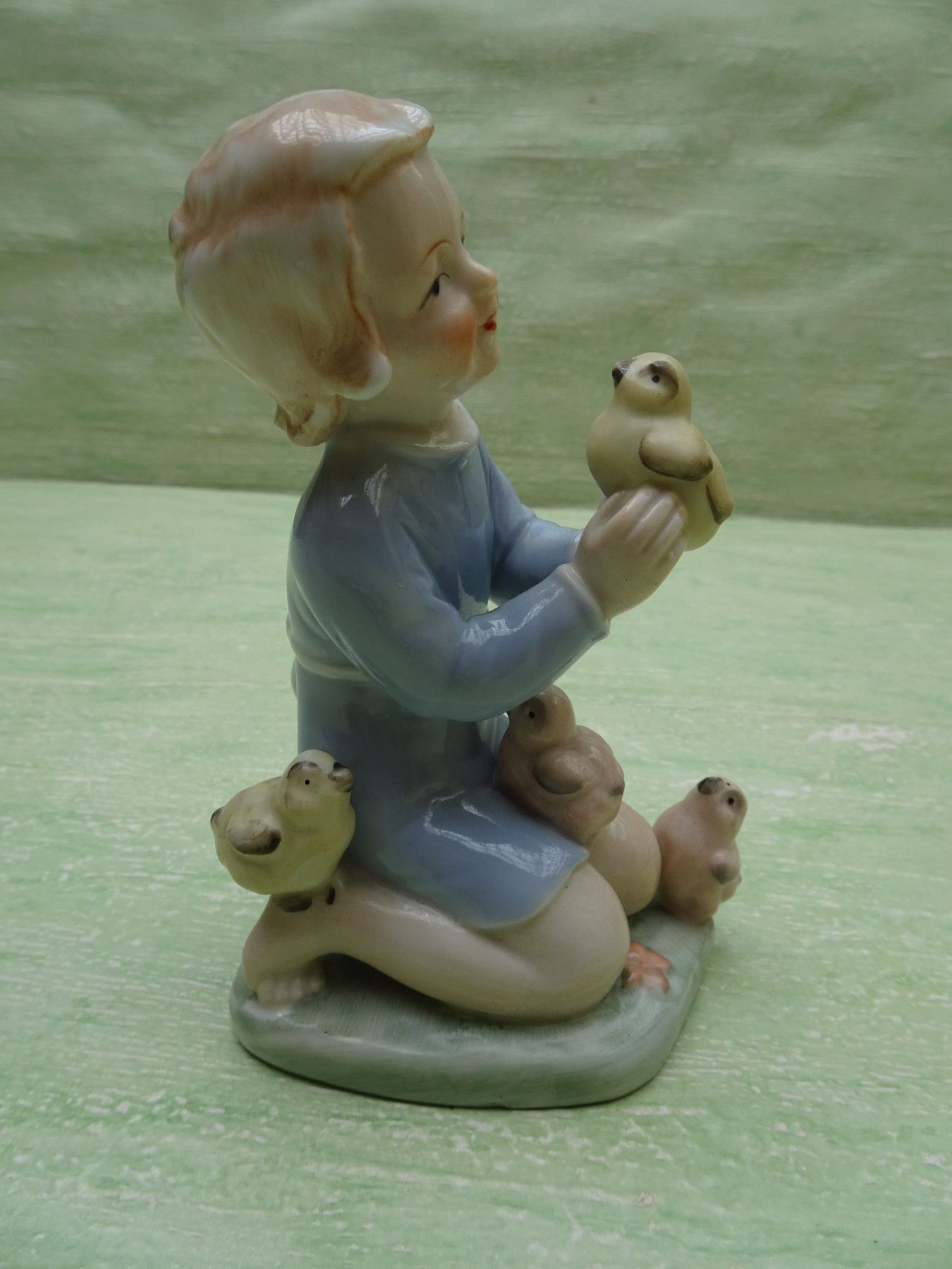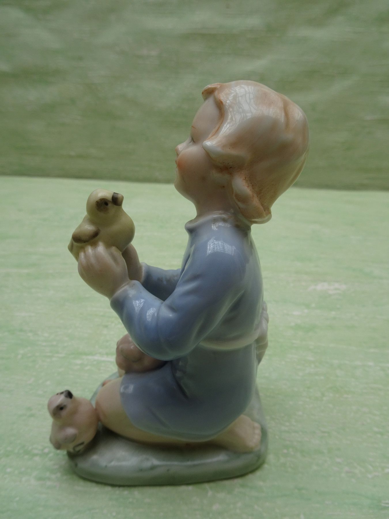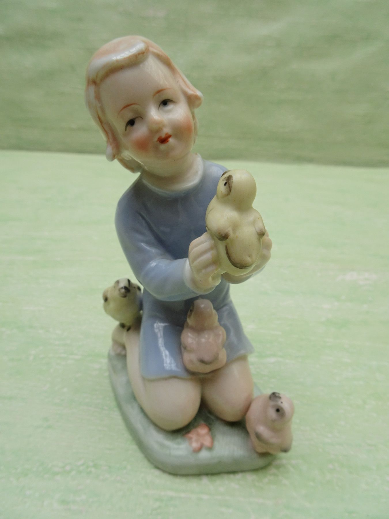 Marke: Krone & M Kind mit Küken "blau-weiß ca 13cm