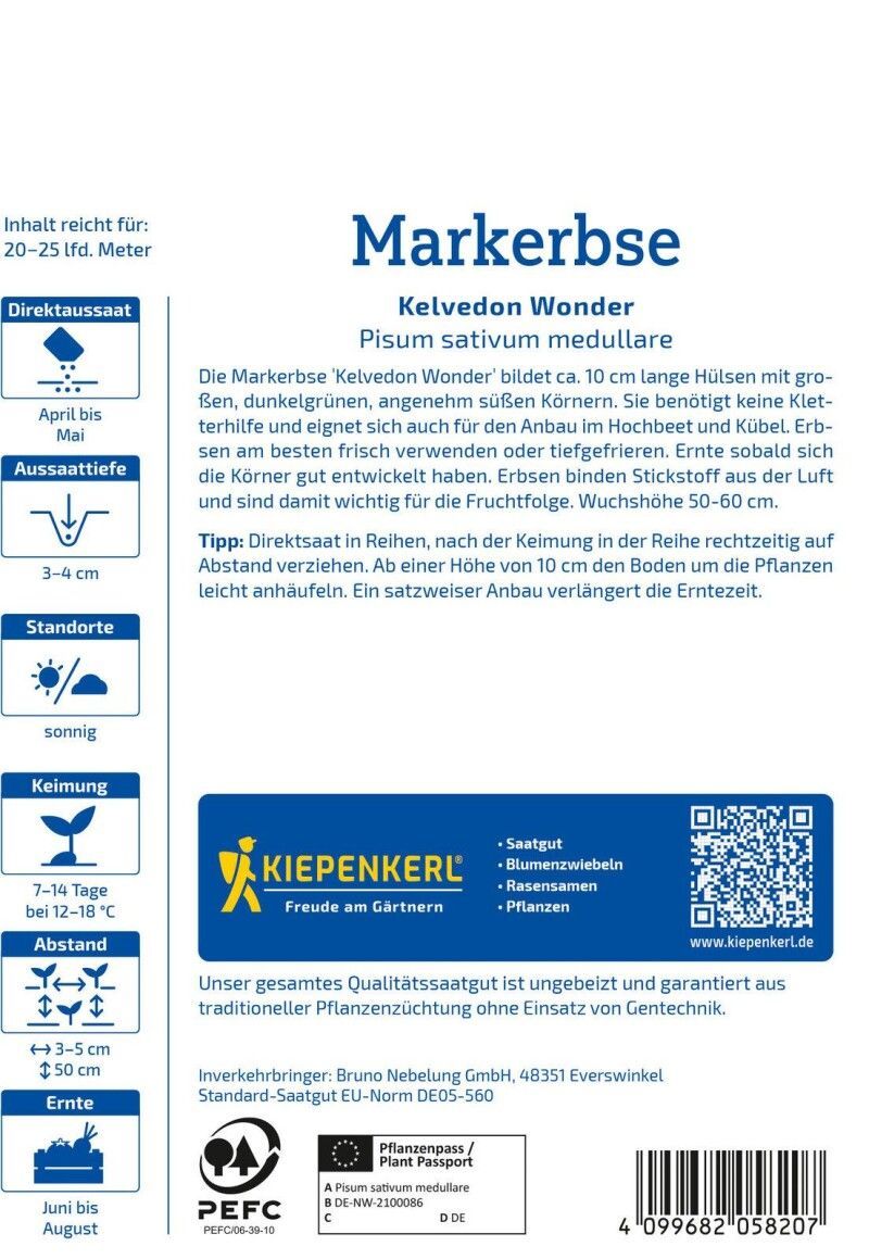 Kiepenkerl Markerbse Kelvedon Wonder, Vorteilspackung, robust - niedrig wachsend,