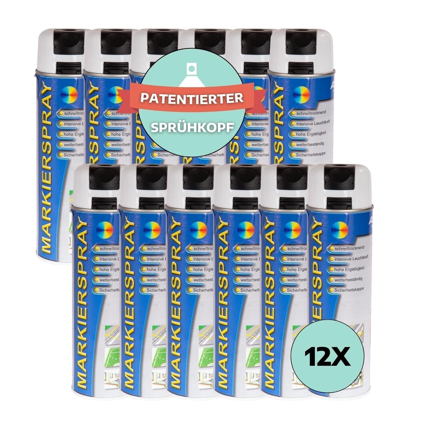 Markierspray weiß Markierfarbe Markierungsspray 12x500ml mit Sicherheitskappe