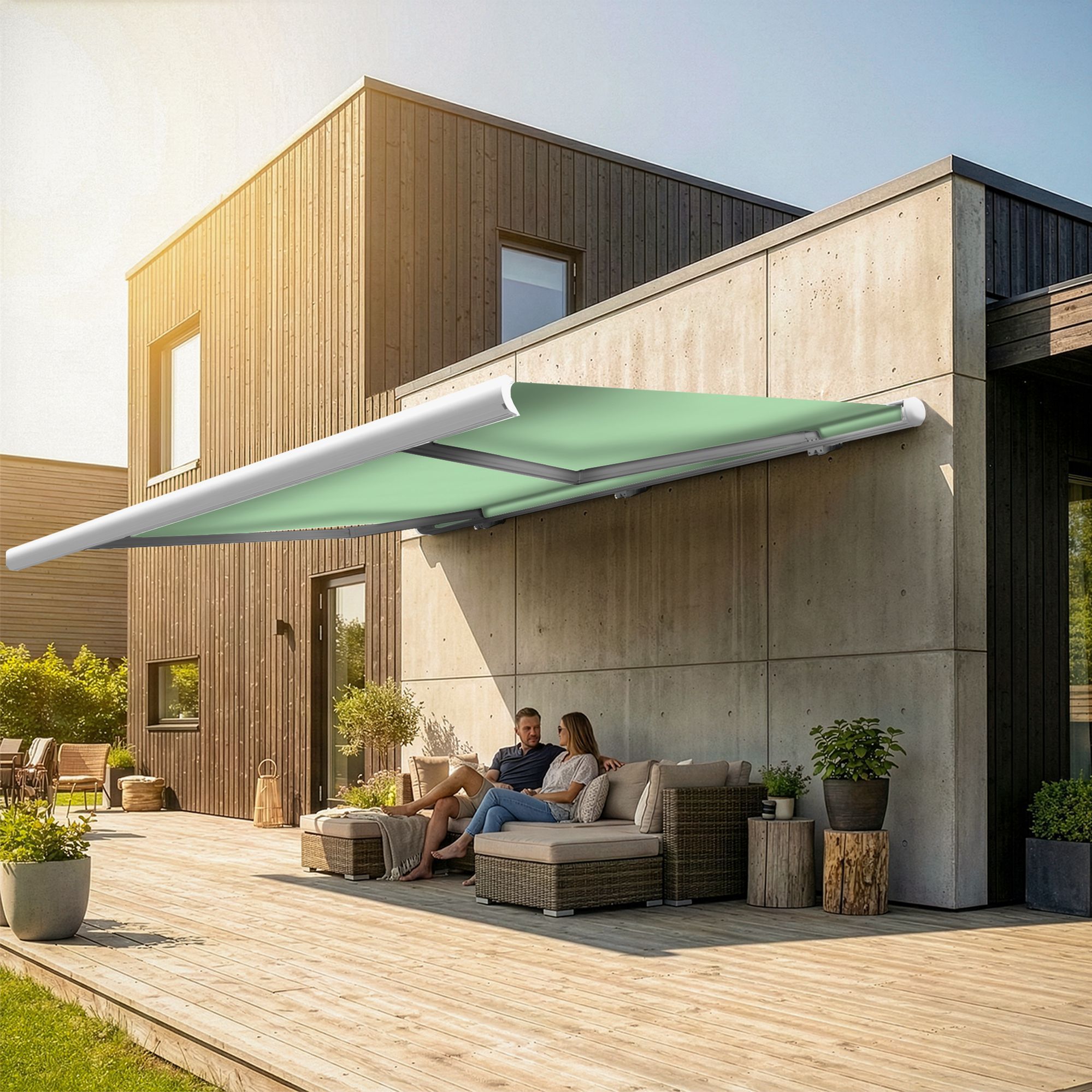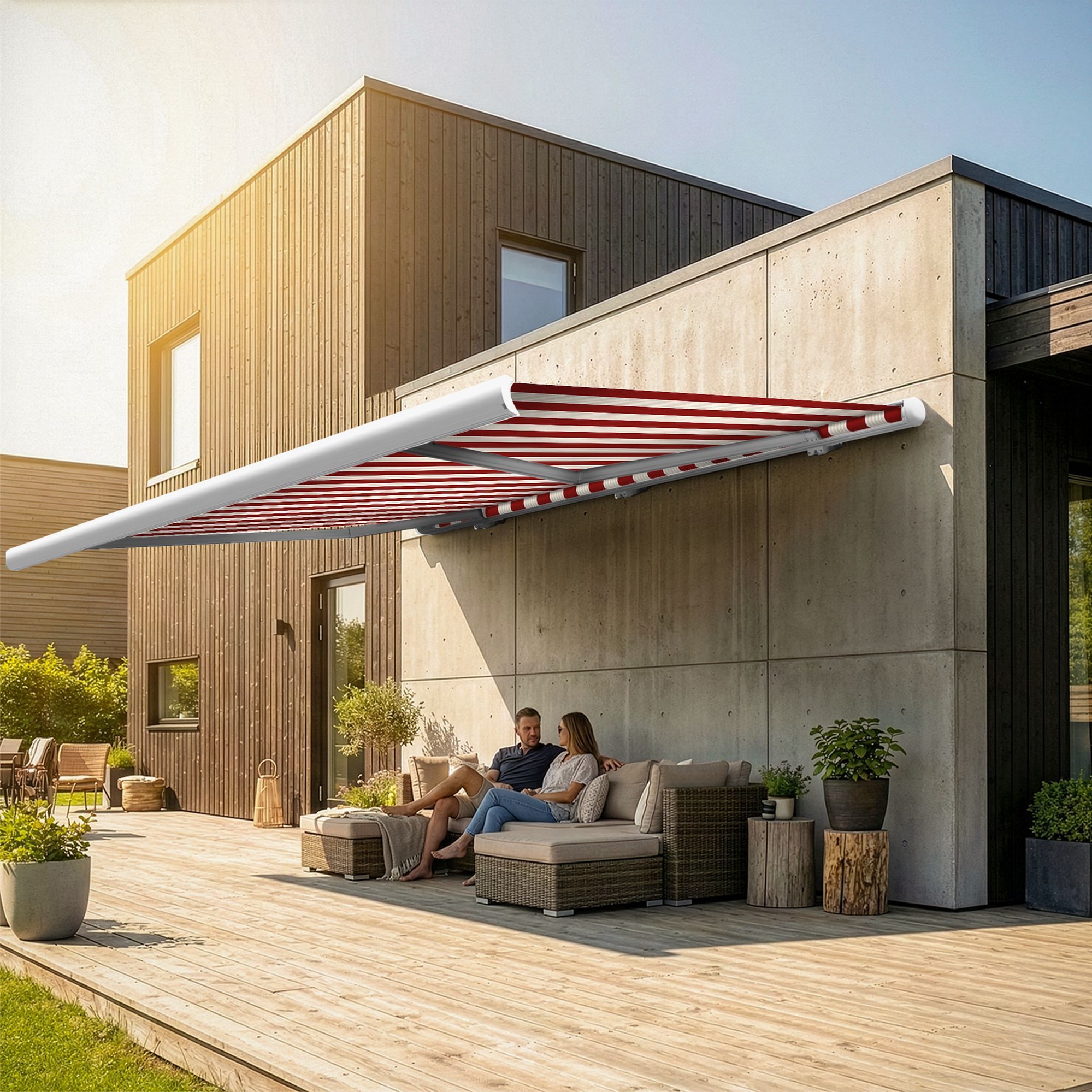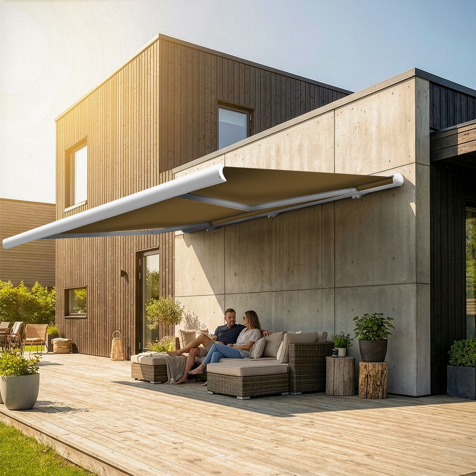 Markise elektrische Kassettenmarkise Gelenkarm Vollkassettenmarkise weiße Kassette