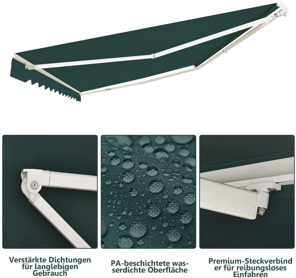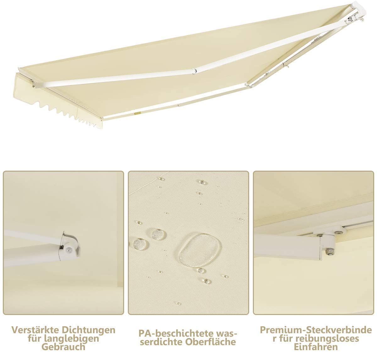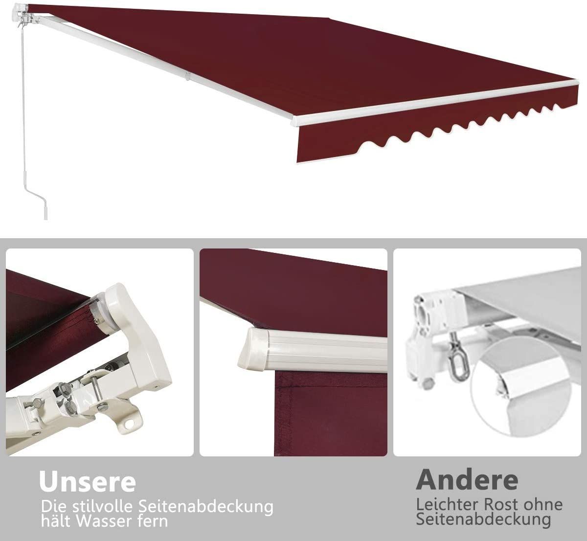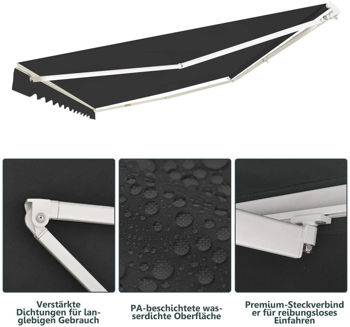Markise mit kurbel, Balkonmarkise Sonnenschutz Gelenkarmmarkise 360x300cm für Balkon