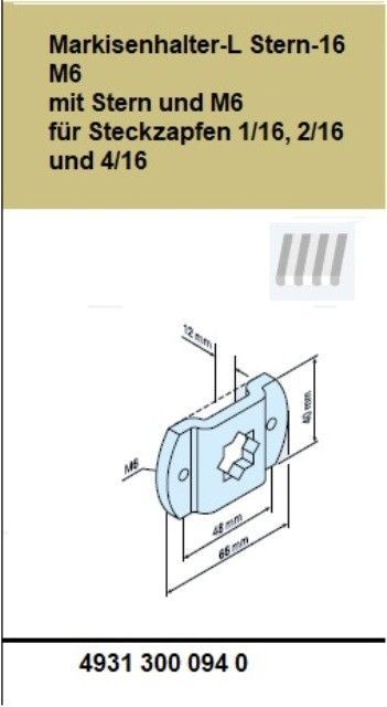 Markisenhalter-L Stern-16 M6 für Steckzapfen für Becker Rohrantriebe L Serie