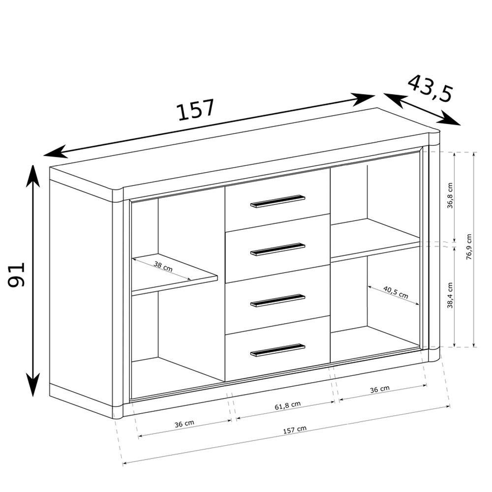 Marmex Dallas D1 - Kommode 157 cm; mit Schubladen und Zwei Türen, Wohnzimmer