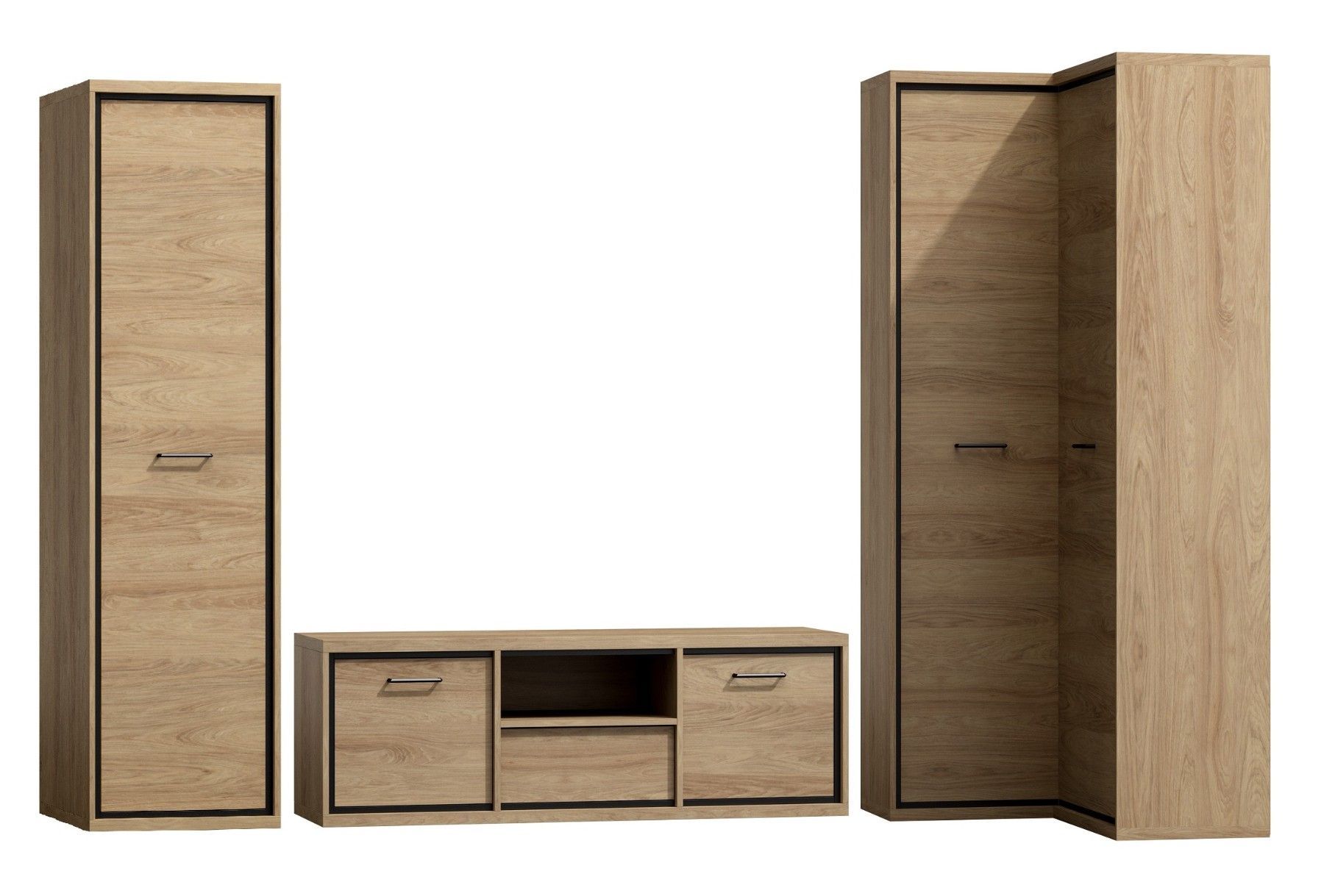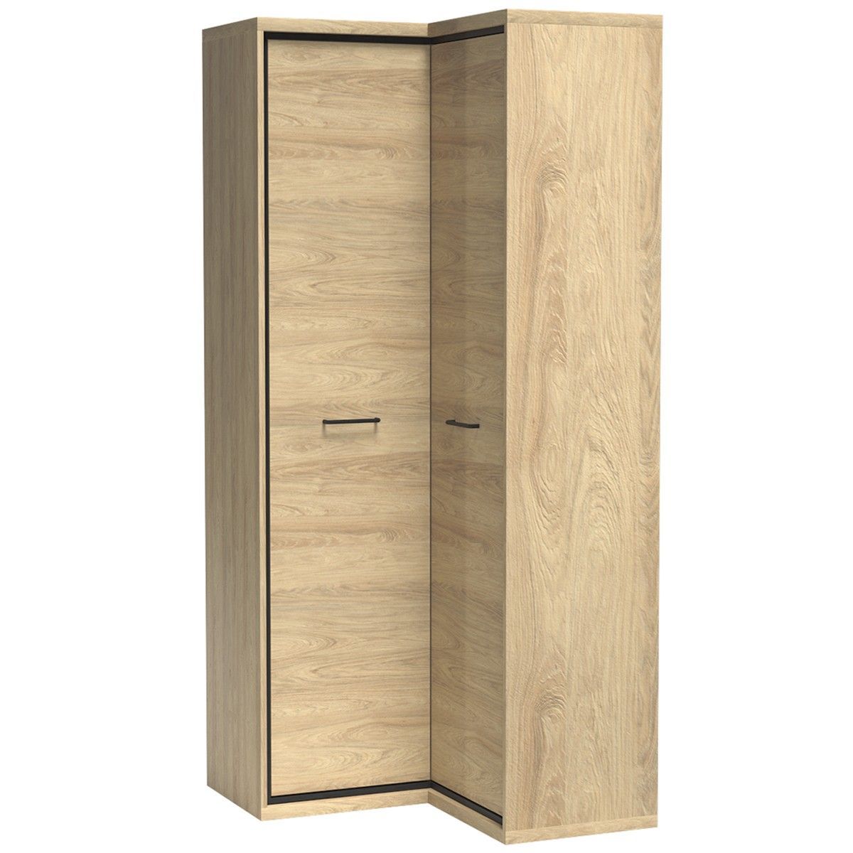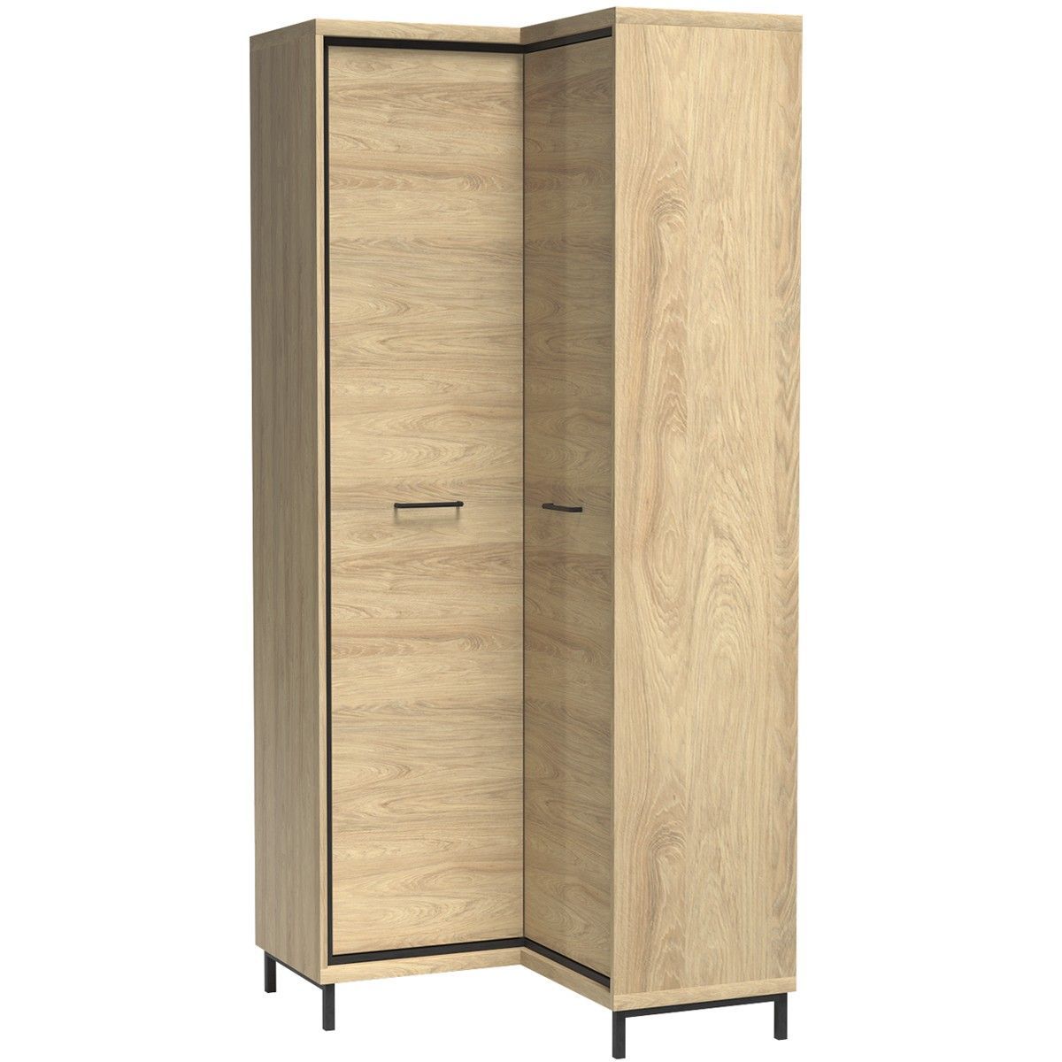 Marmex Mediolan M-14 - Raumecke, zweitüriger Kleiderschrank; Im Inneren verfügt das Möbelstück über eine Kleiderstange und darüber einen Einlegeboden; . Die Farbe von natürlichem Holz und dunklen, dekorativen Streifen im Loft-Stil wärmen das Interieur Farbe: natural hikora Maße: Breite: 80 102.5cm H