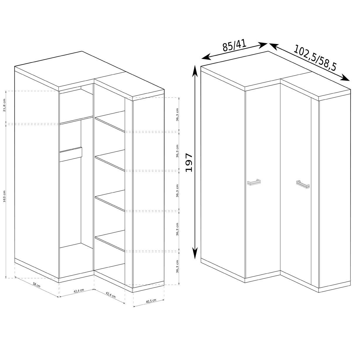 Marmex Mediolan M-14 - Eckgarderobe, zweitüriger Kleiderschrank für das Schlafzimmer