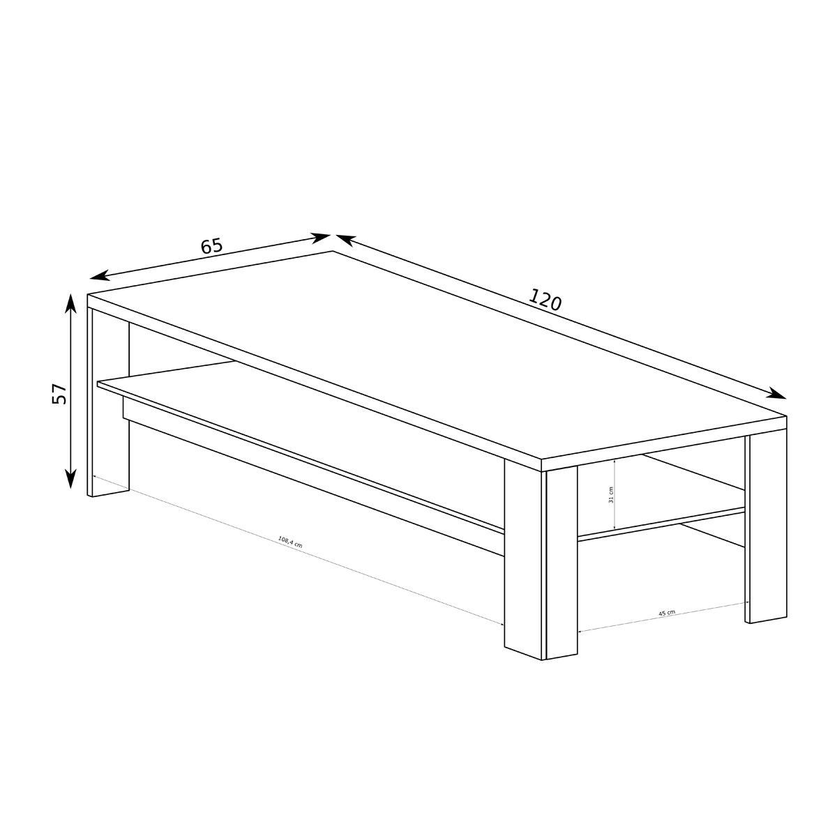 Marmex Mediolan M-18 - Ein einfacher, leichter Couchtisch, der sich perfekt für ein Wohnzimmer eignet; Die Bank besteht aus sehr langlebigen Produkten; Eine separate Ablage für Zeitschriften etc. hilft Ordnung und Harmonie zu bewahren Farbe: natural hikora Maße: Breite: 120 cm Höhe: 57 cm Tiefe: 65