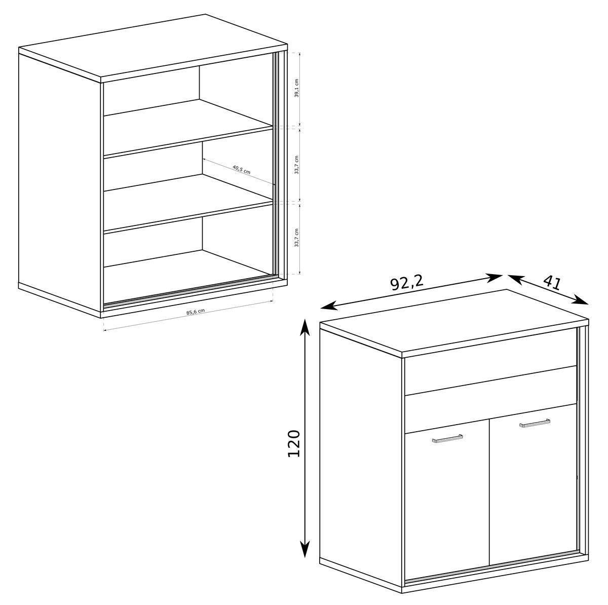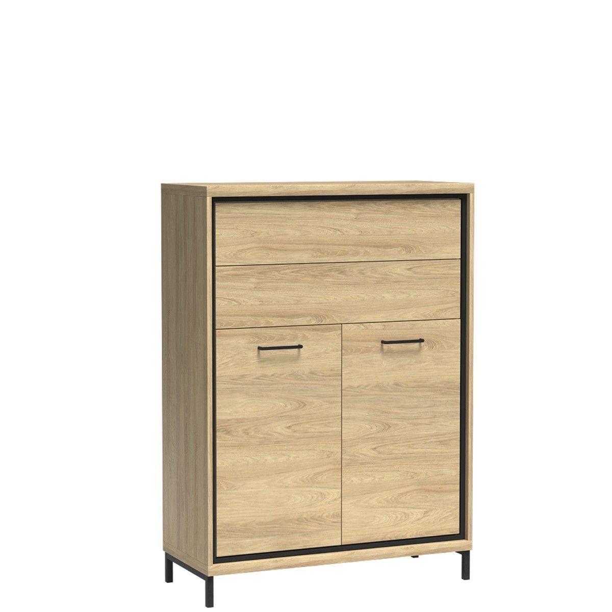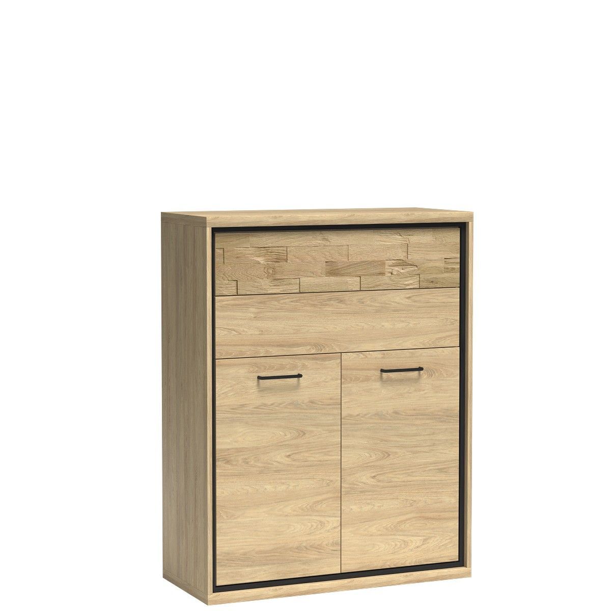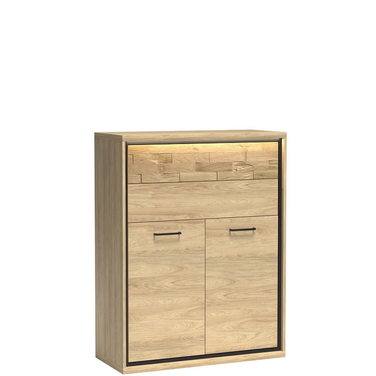 Marmex Mediolan M-6 - Eine kleine, funktionale Kommode in hellem Hickory-Farbton; Der obere Teil besteht aus zwei Touch-Open-Schubladen; Es passt in das Wohnzimmer, Schlafzimmer oder Esszimmer im industriellen Stil Farbe: natural hikora natural hikora + Eichenbrett Maße: Breite: 92.2 cm Höhe: 120 cm