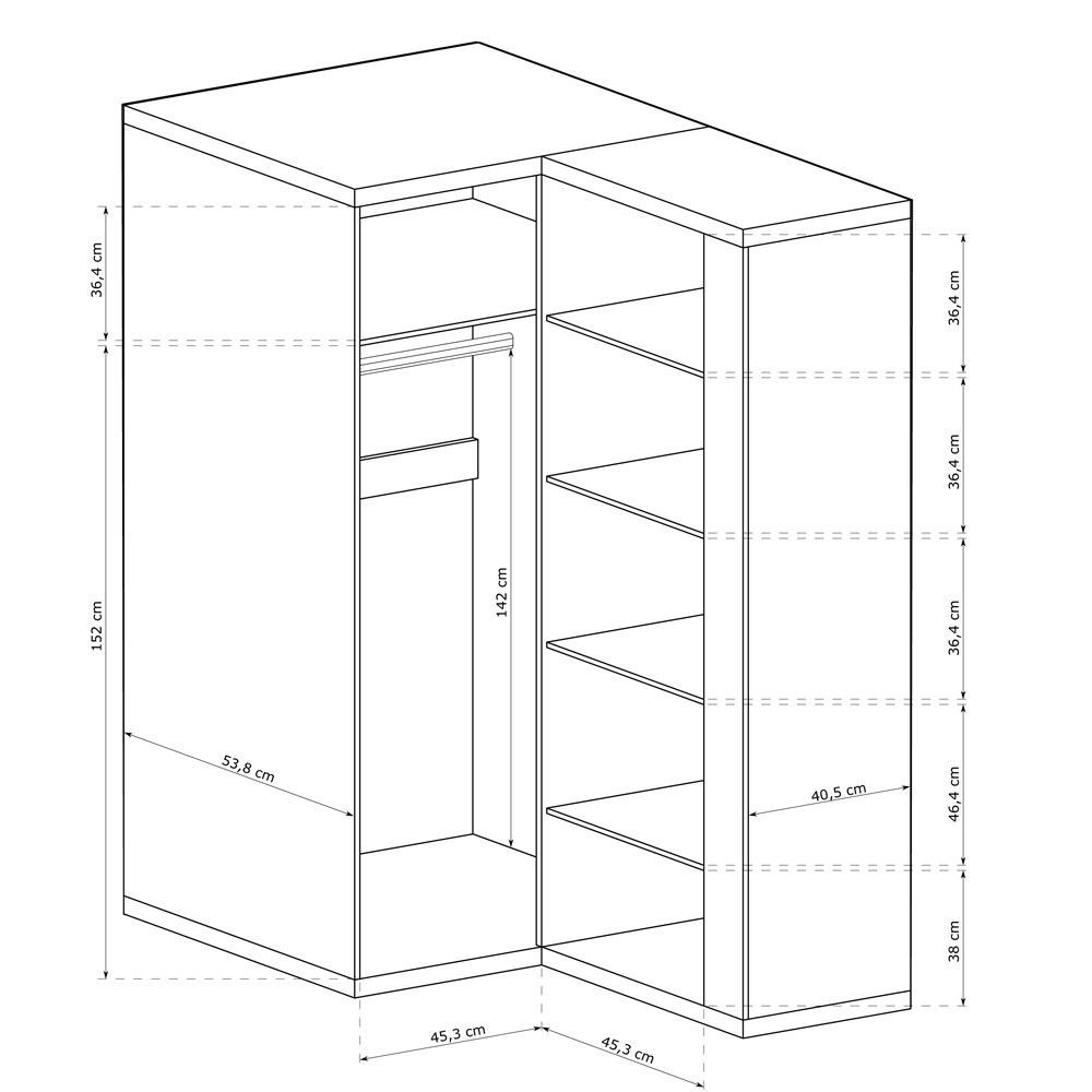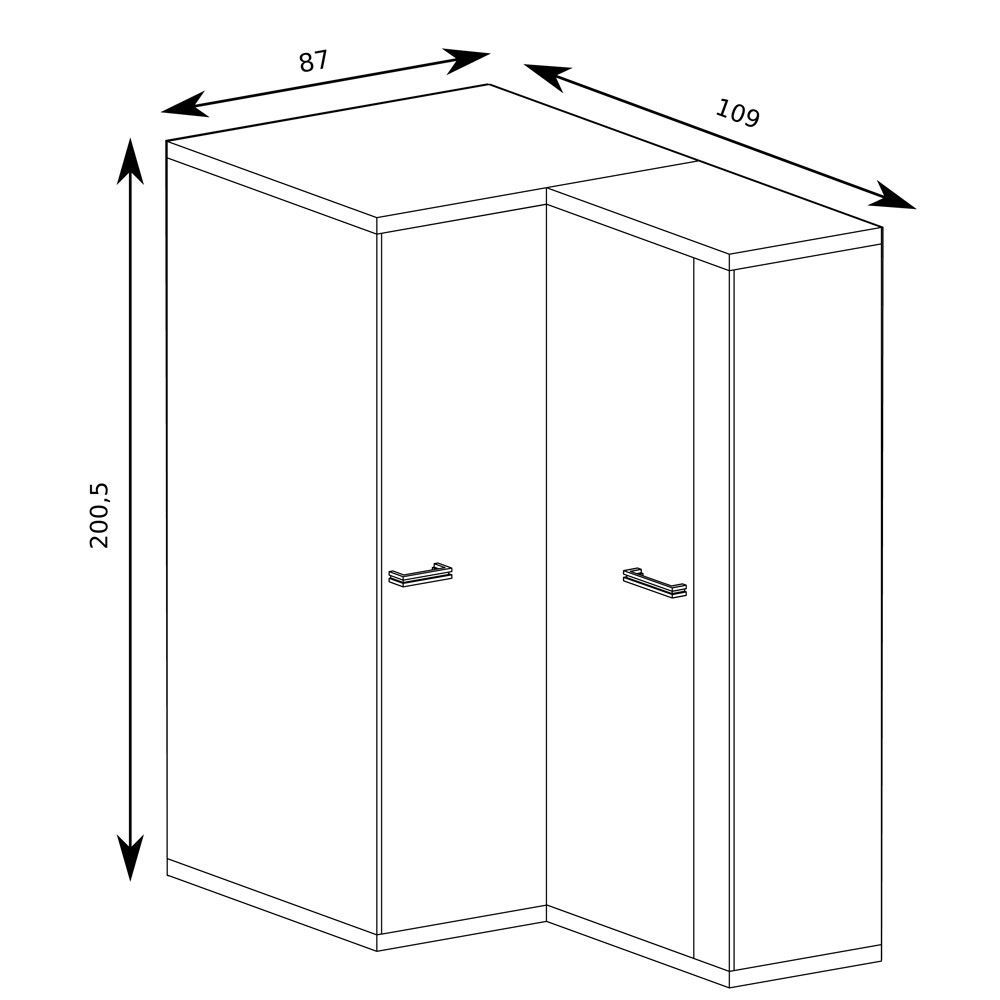 Marmex Natural N14 - Zweitüriger Eckschrank; hat 5 Einlegeböden und eine 83,2 cm lange Stange; für Kleidung, Dokumente, Accessoires und andere notwendige Dinge Farbe: Eiche Ribbeck Frontdesign: Natural Gitter Maße: Breite: 87 - 109 cm Höhe: 200.5 cm Tiefe: 40.5 cm Ausführung: 20 Funktionselemente in