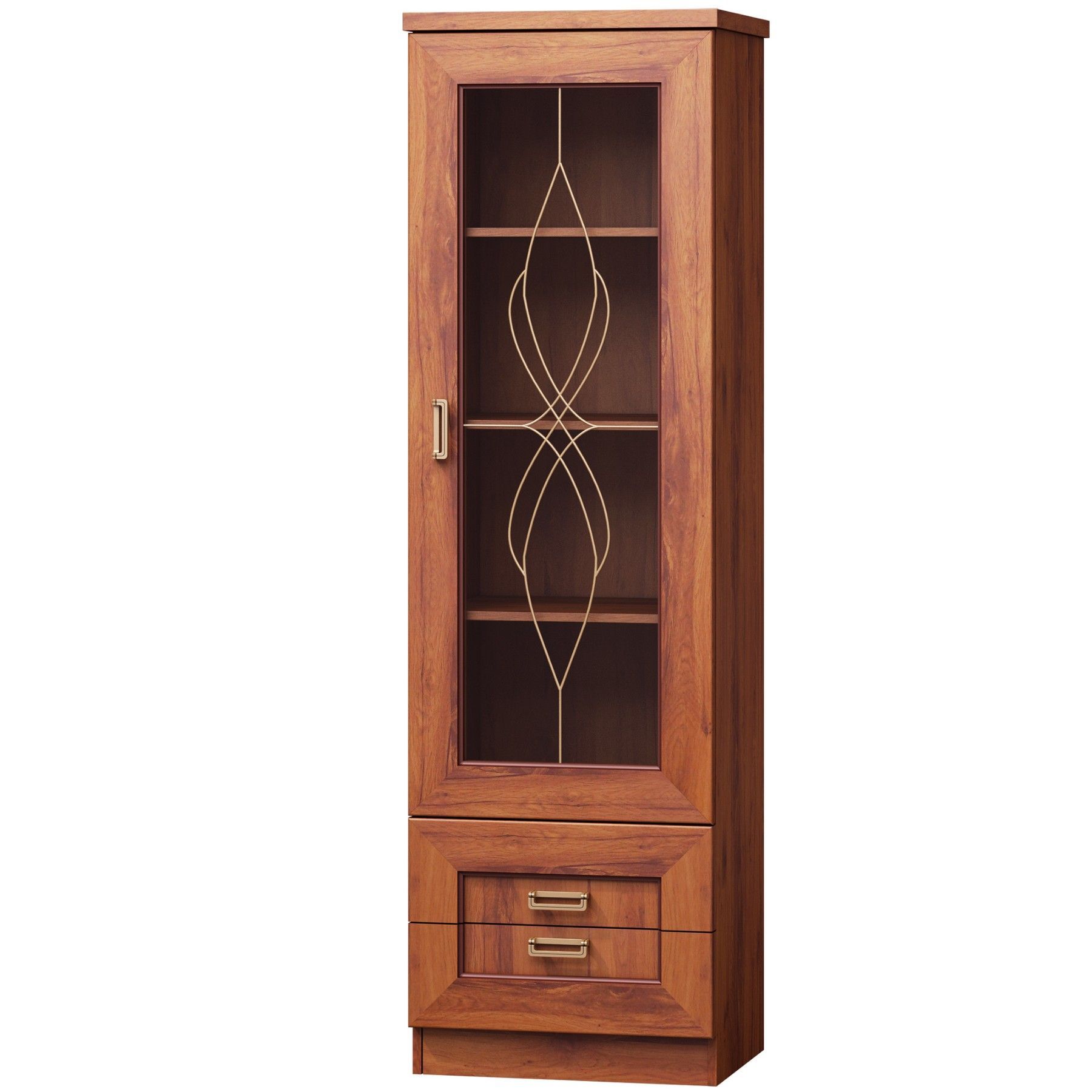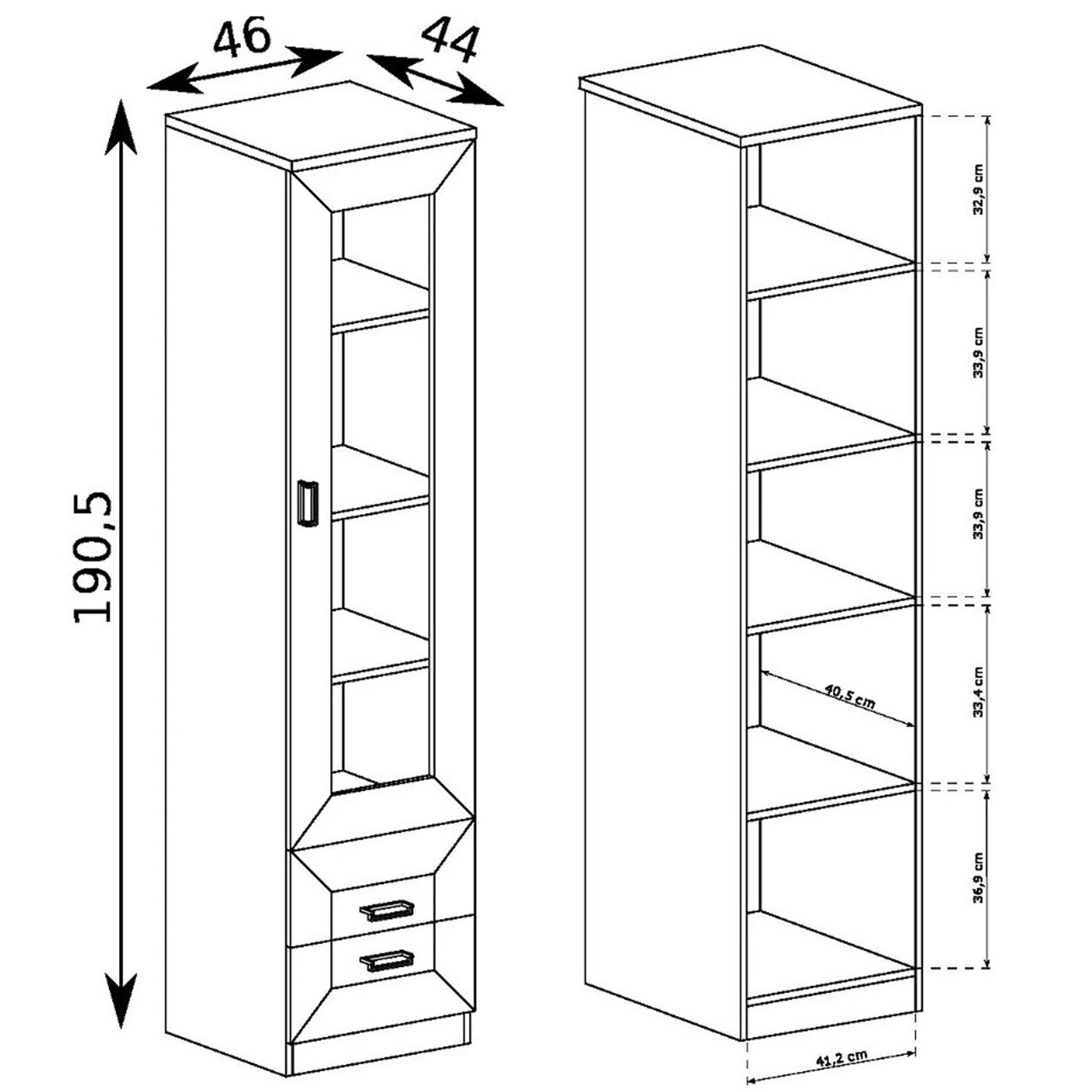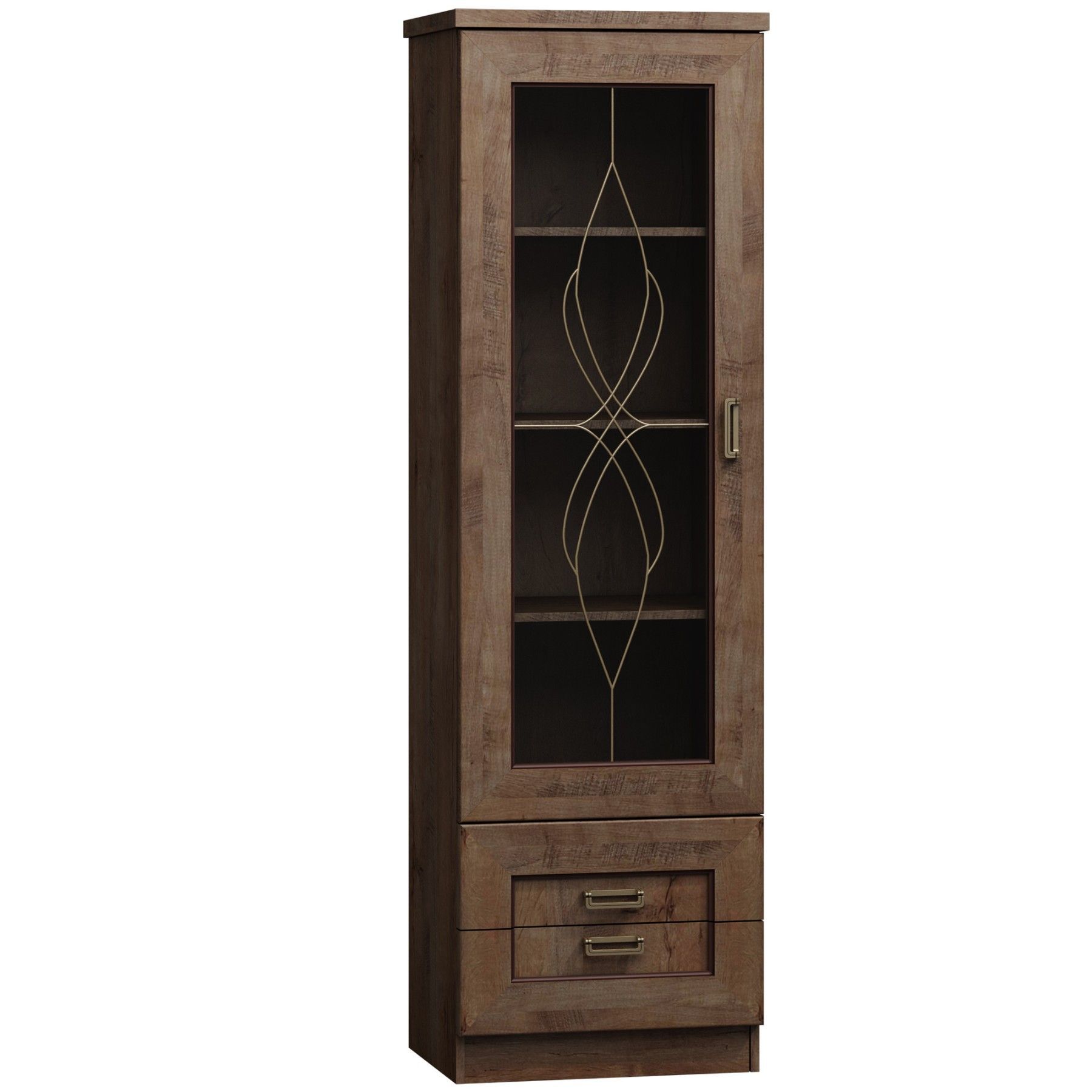 Marmex Tadeusz T10 - Eine eintürige Vitrine mit stilvollen Sprossen auf Glasfronten; Im Inneren gibt es drei Regale, auf denen wir unsere Kostbarkeiten wie Schmuck und raffiniertes Geschirr ausstellen können; Unten zwei Schubladen Farbe: 100 Jahre alte Eiche Eiche lefkas Maße: Breite: 46 cm Höhe: 19