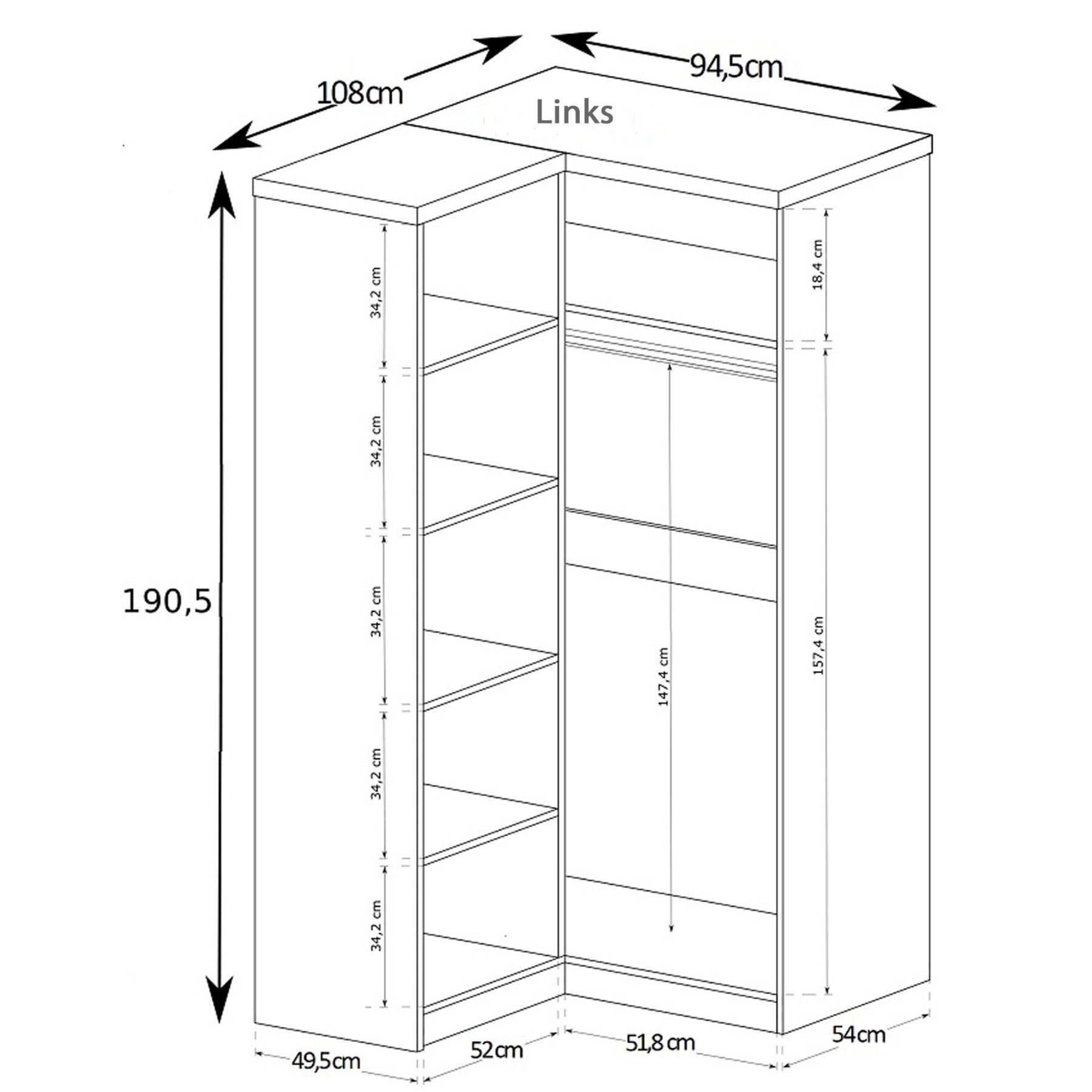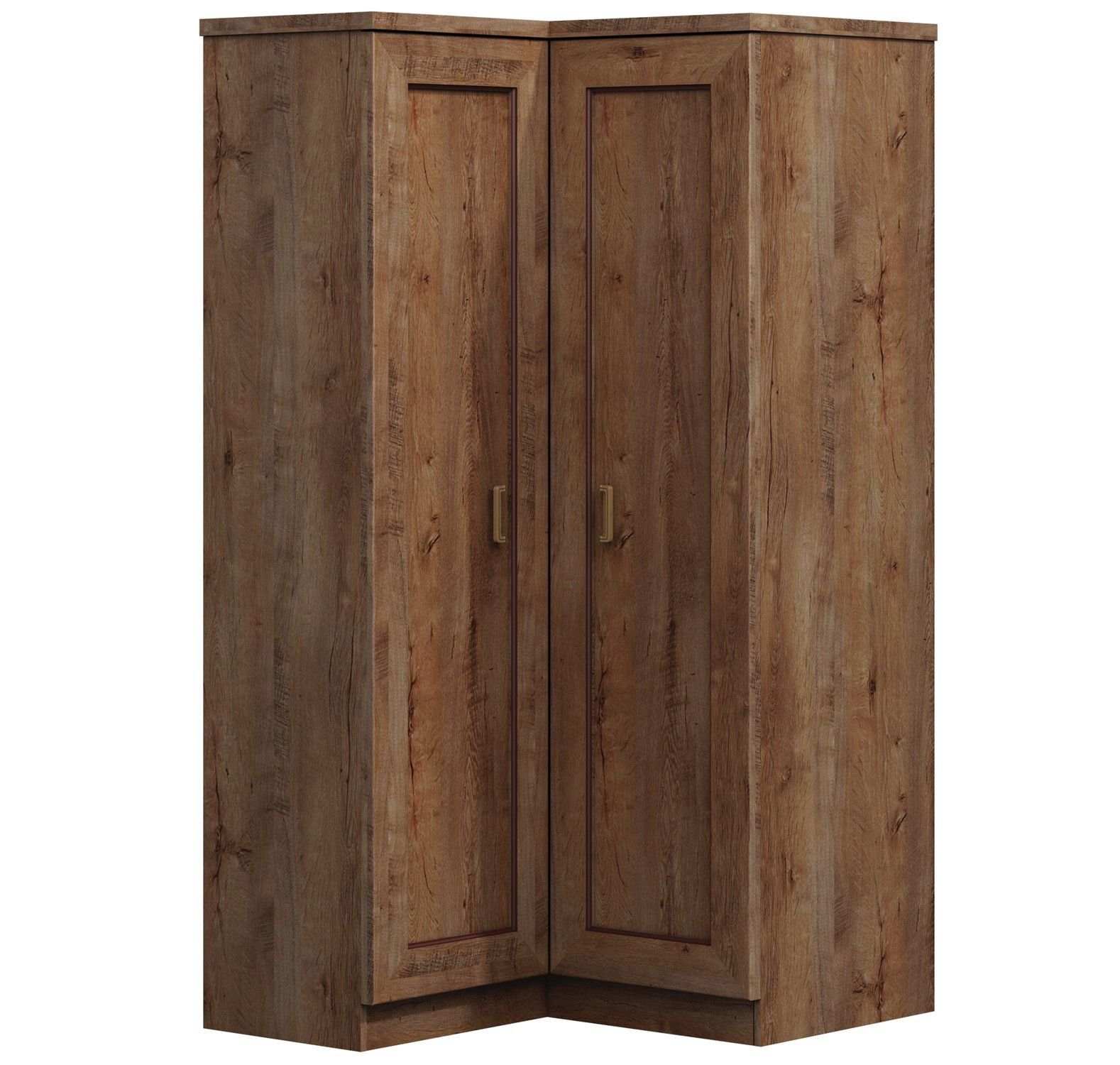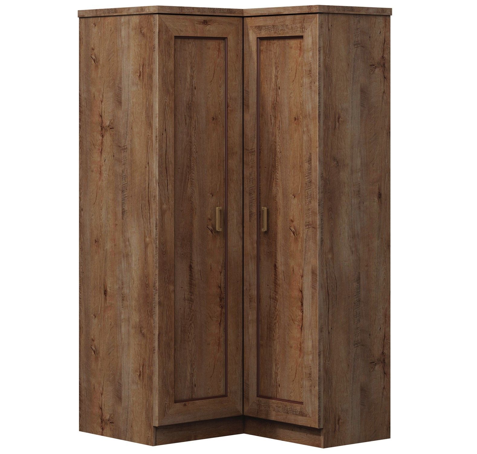 Marmex Tadeusz T25r - Großer Eckschrank. Es hat vier Regale und eine 89 cm lange Stange. Über der Bar befindet sich eine funktionale, zusätzliche Ablage. Eine umgekehrte Version des Kleiderschranks ist ebenfalls erhältlich Farbe: 100 Jahre alte Eiche Eiche lefkas Maße: Breite: 95- 110 cm Höhe: 190 c