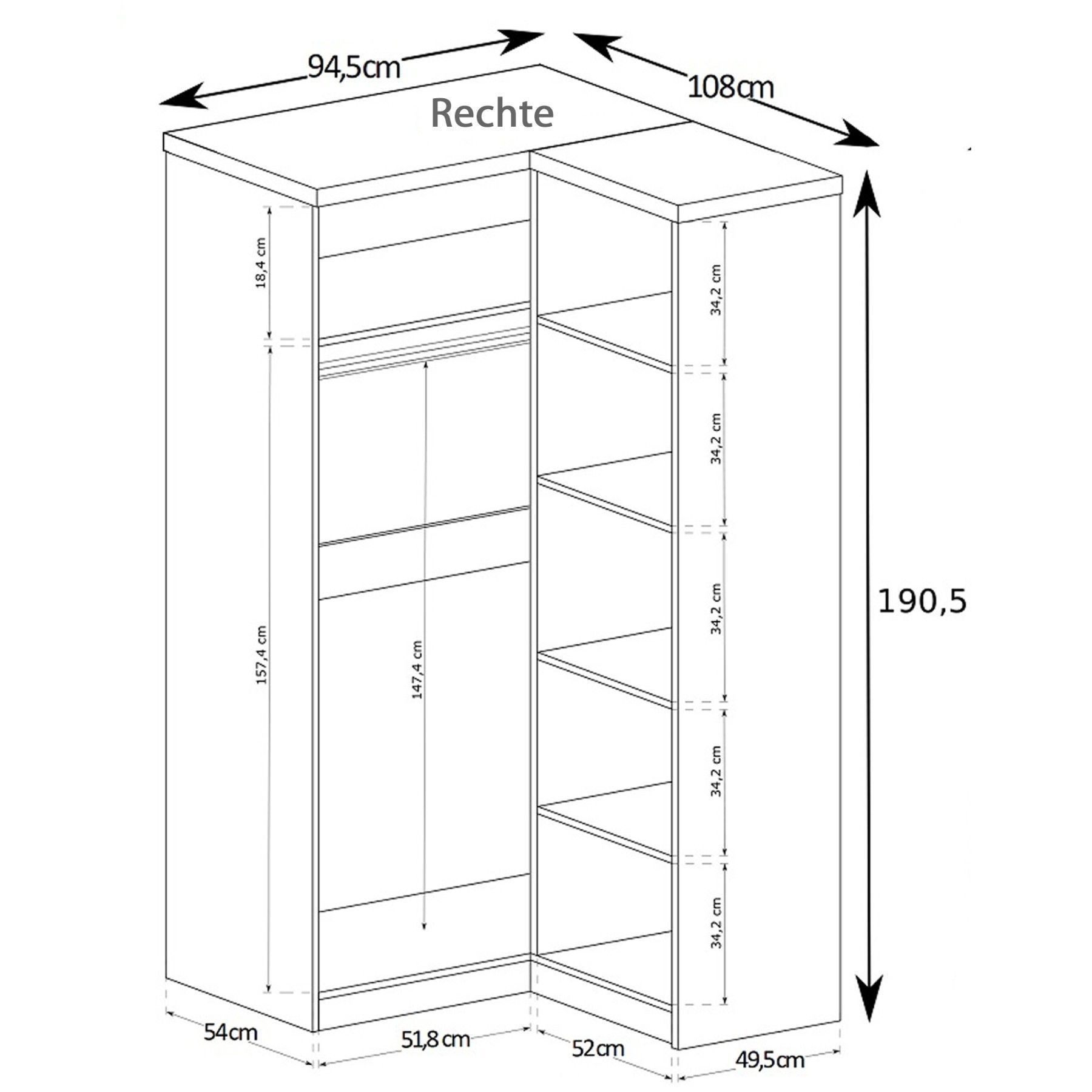 Marmex Tadeusz T25r - Großer Eckschrank für Wohnzimmer, Schlafzimmer, Flur