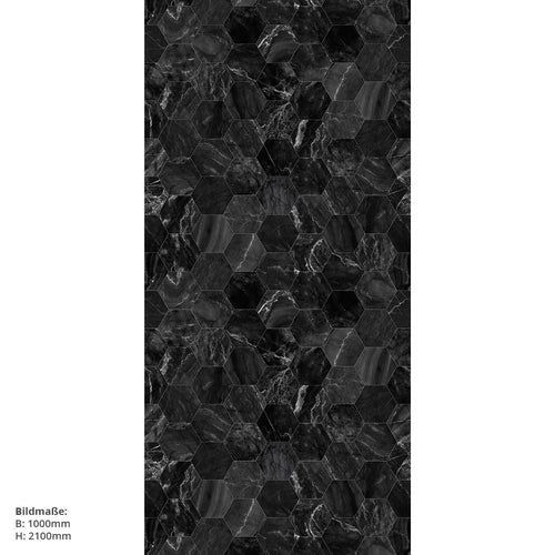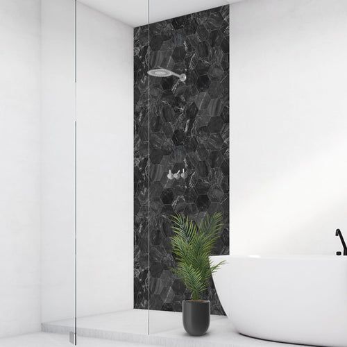 Marmor Hexagon Schwarz , fugenlose Wandpaneele aus Alu-Verbund 3mm, Duschrückwan...