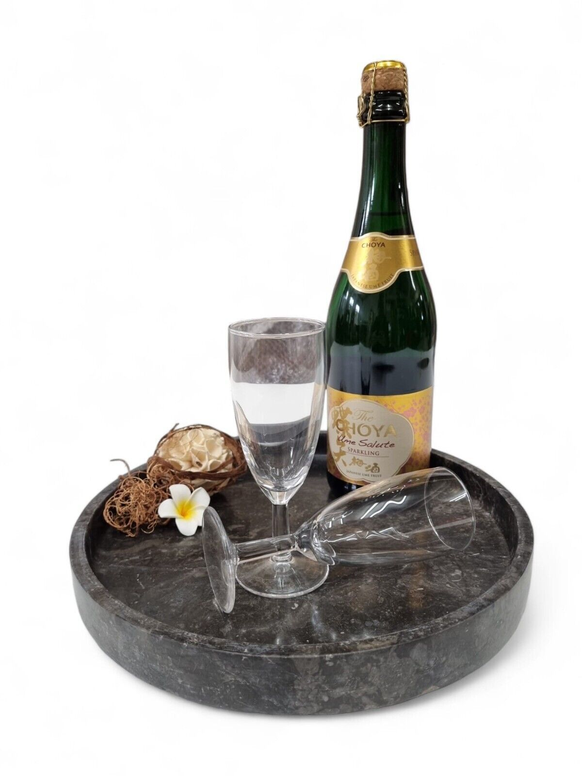 Marmor Tablett rund Erleben Sie zeitlose Eleganz und multifunktionale Nutzung mit unserer schwarzen Marmor Tablett , die auch als edle Schale verwendet werden kann. Das runde Tablett, handgefertigt in Indonesien, besticht durch sein stilvolles Design und die luxuriöse Optik des schwarzen Marmors , d