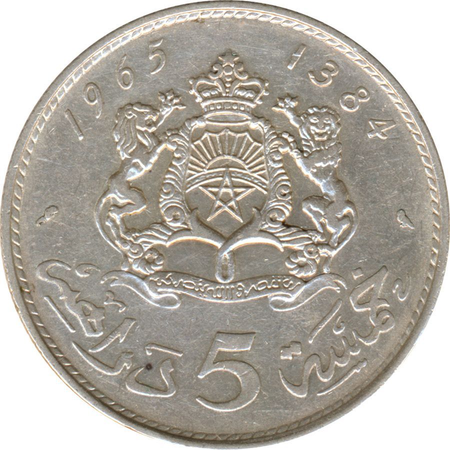 Marokko 5 Dirham 1965 Hassan II. Silber*