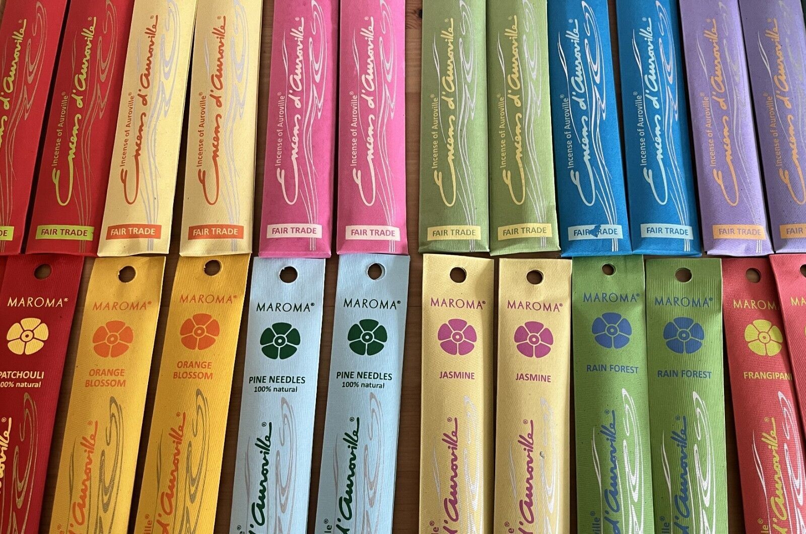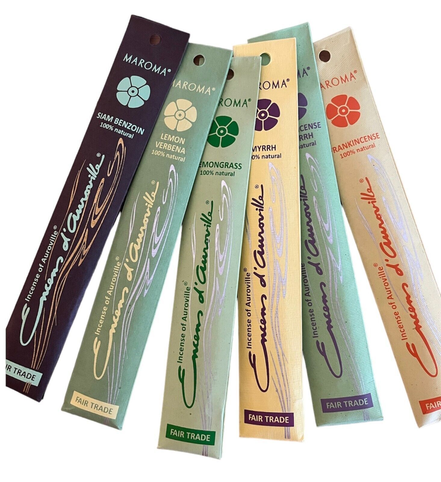Natürliche Räucherstäbchen von Maroma Diese Räucherlinie ist eine der berühmtesten der Welt. Sie werden in Auroville (in der Nähe von Puducherry) unter optimalen Qualitätsbedingungen hergestellt. 100 % natürliche Räucherstäbchen. Jede Packung enthält: 10 Stück Standard-Räucherstäbchen Länge ca. 20,3
