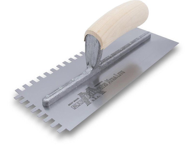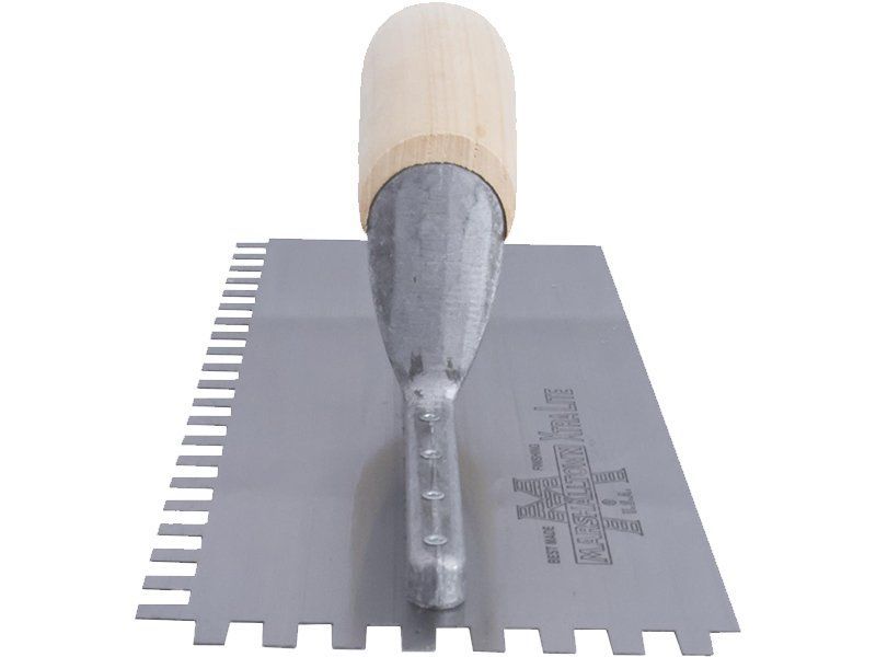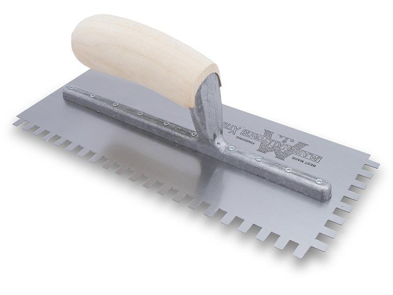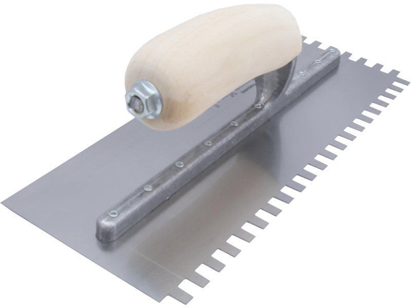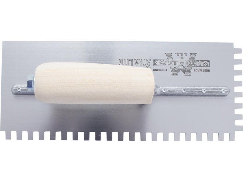 Marshalltown Gezahnte Kelle, Eckig 6x10x6 mm, Gebogener Holzgriff, Stahl, Maße: 279x1