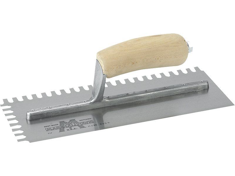 Marshalltown Gezahnte Kelle, U-6x13x6 mm, Gebogener Holzgriff, Stahl, Maße: 279x114