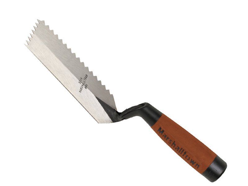 Marshalltown Zweiseitig gezahnte Randkelle, V- 6x4,5 mm, Durasoft Griff, Stahl, Maße