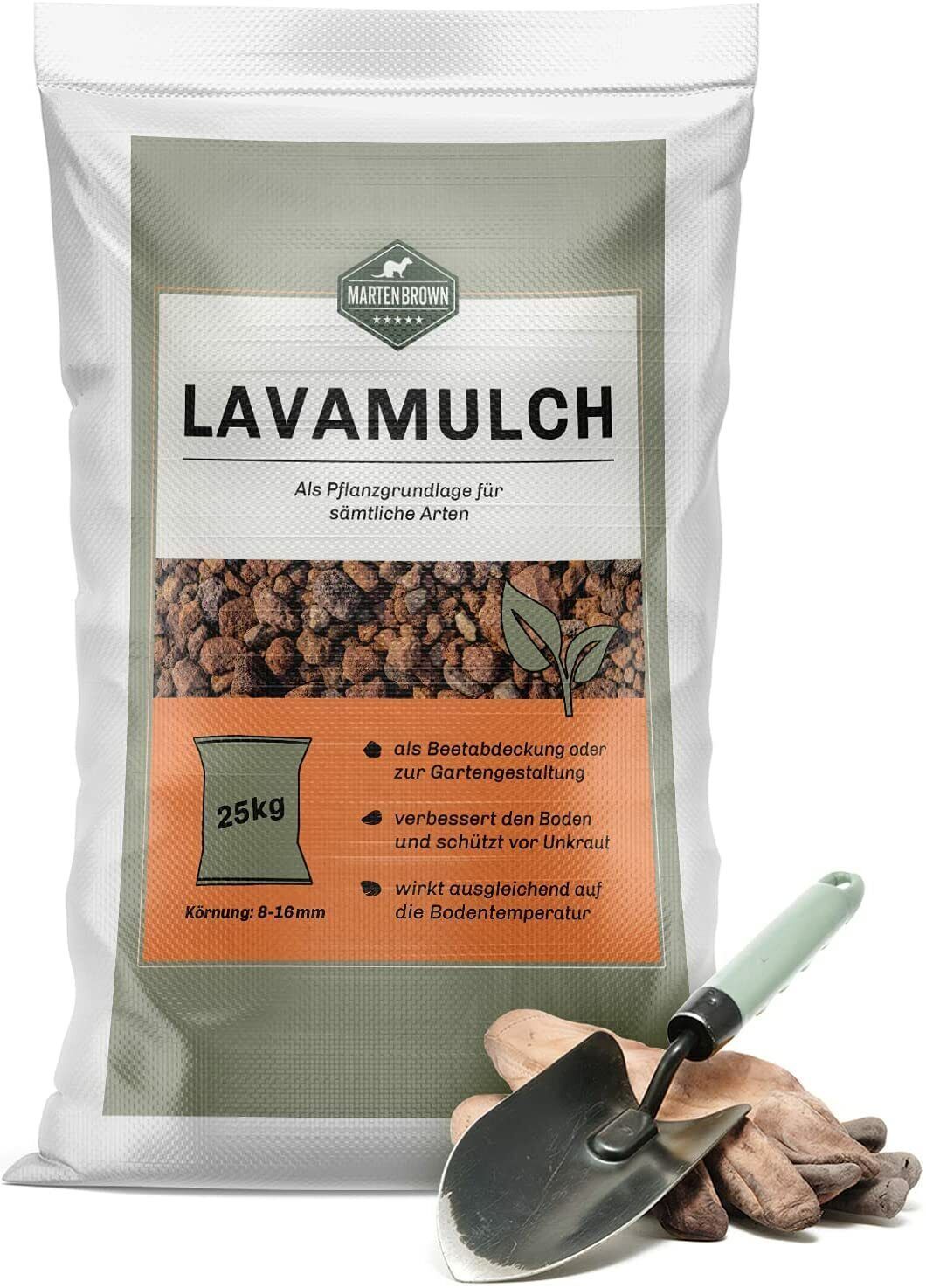 Martenbrown® Lavamulch 25 kg | Lavagranulat 8-16 mm, rot | Pflanzgranulat Garten