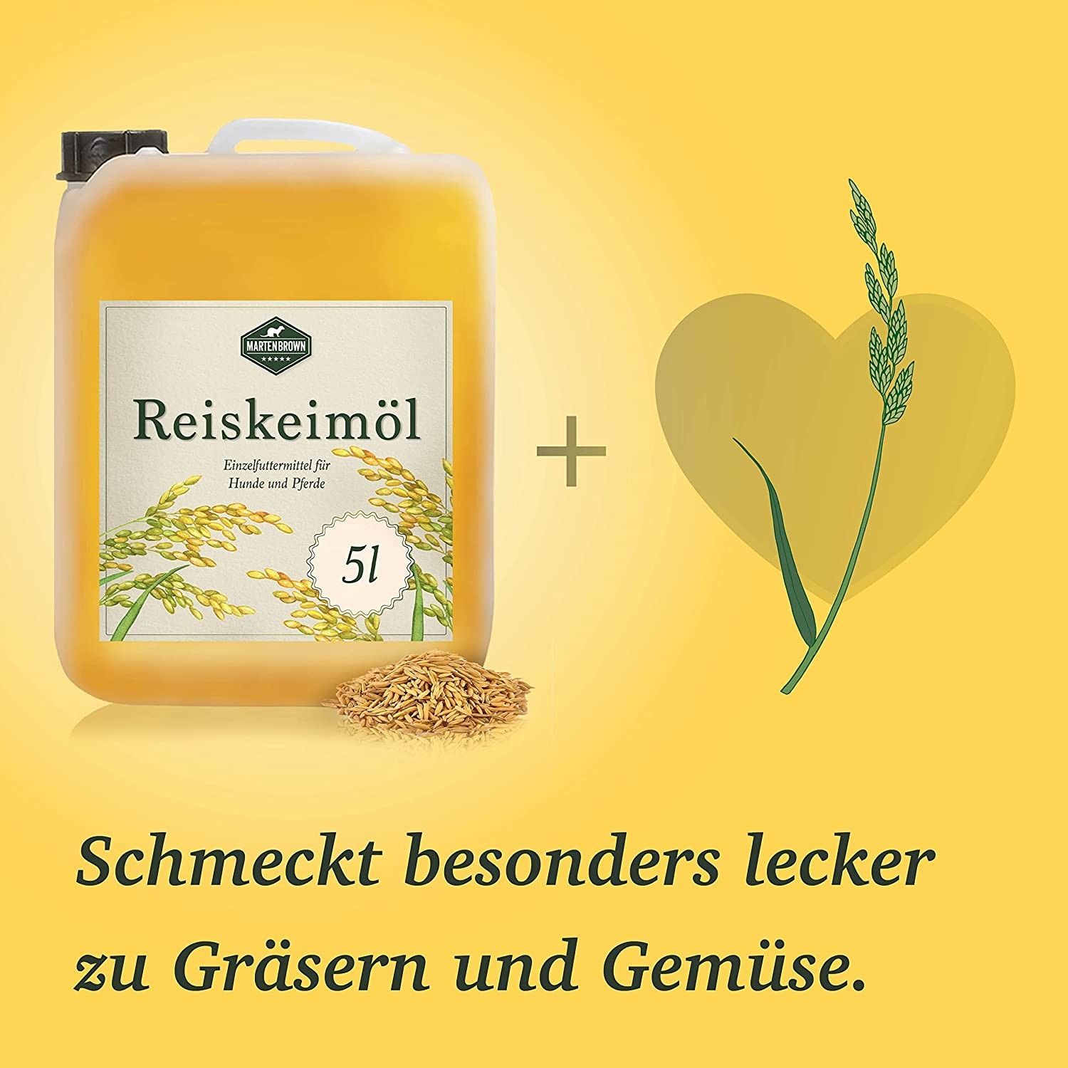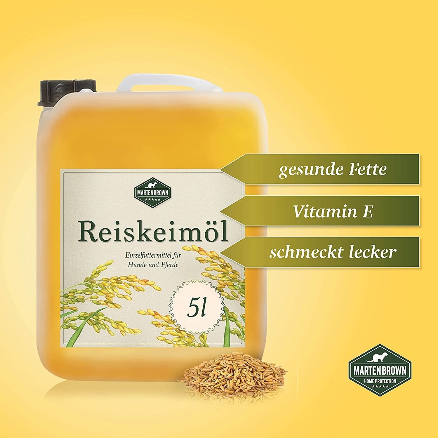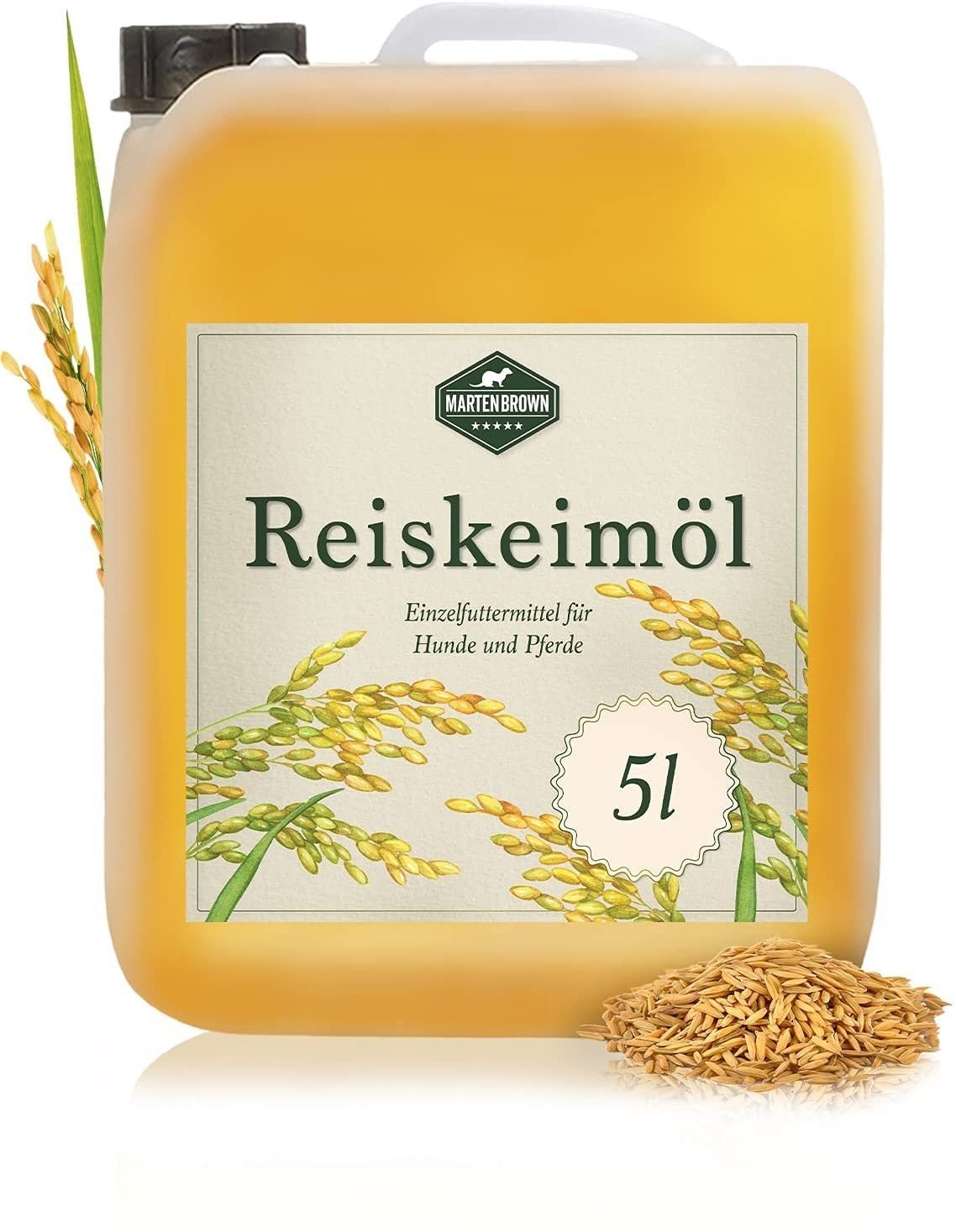 Martenbrown® Reiskeimöl für Pferde, Hunde und Esel I Im praktischen Kanister Barf-Öl