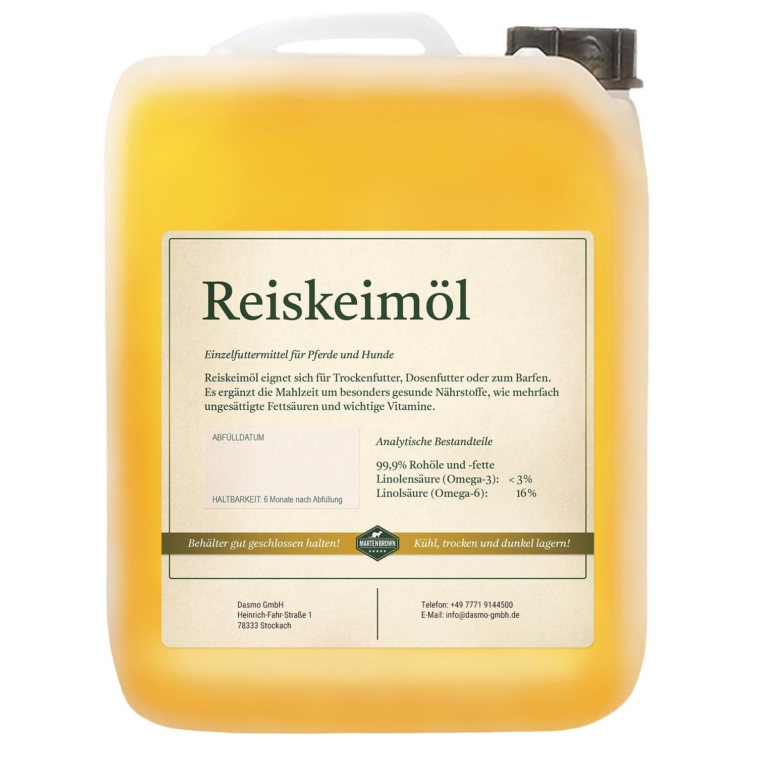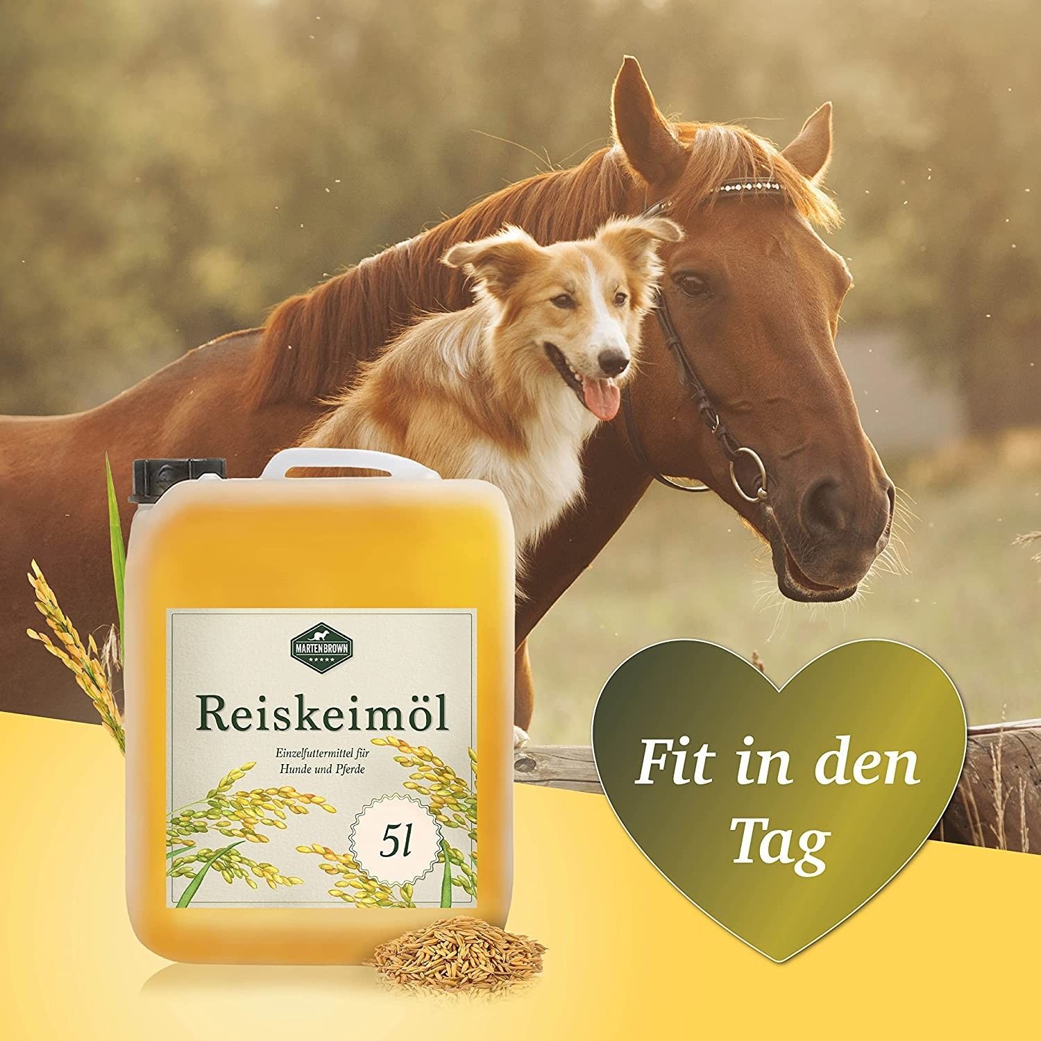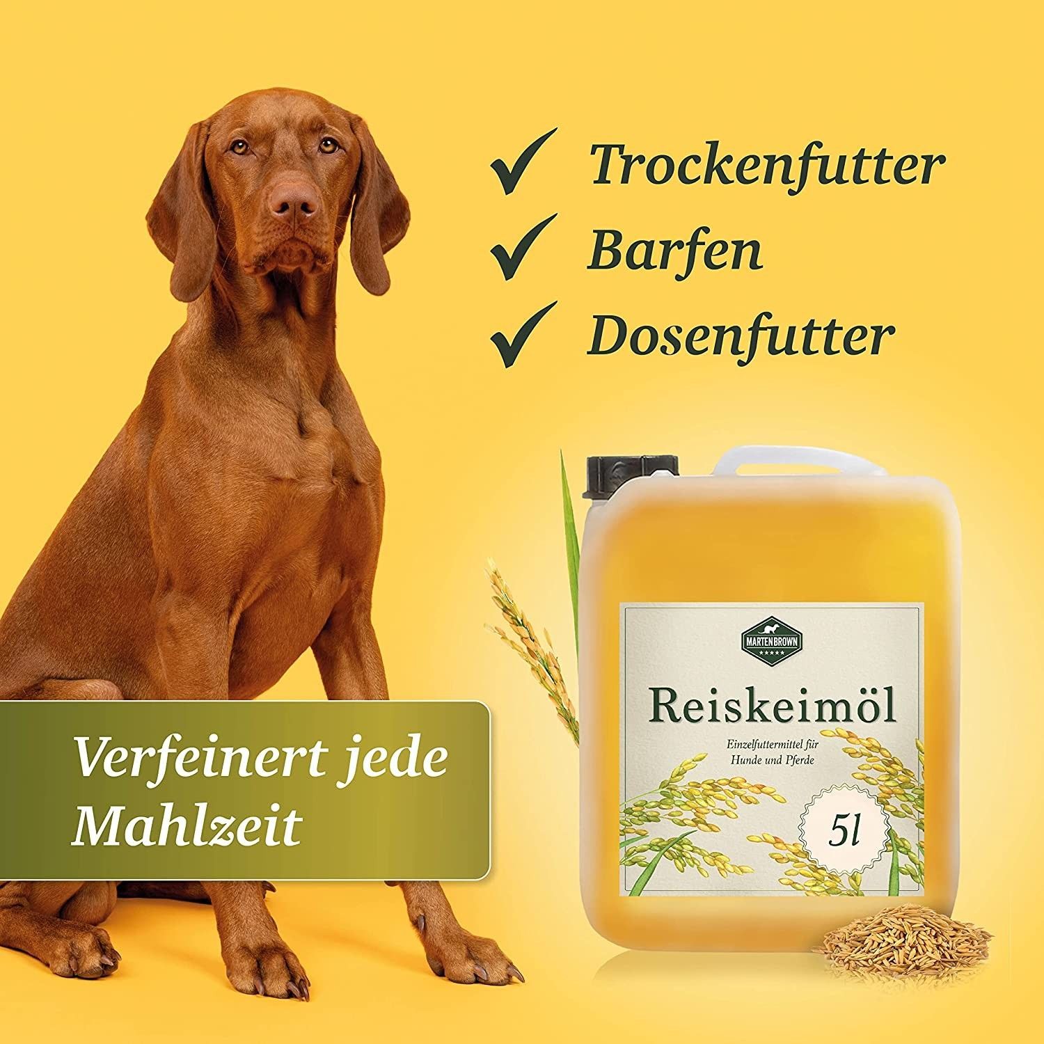 Martenbrown® Reiskeimöl für Pferde, Hunde und Esel I Im praktischen Kanister Barf-Öl
