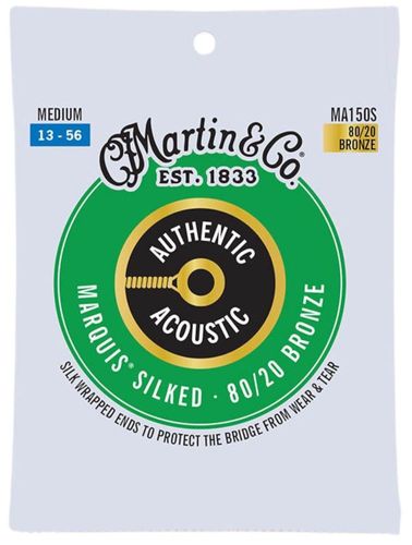 MENÜ Zum Shop Close > > > > > > > > > > Bild vergrößern Martin MA150S - Marquis silked 80 20 Bronze - medium (013-056) Martin Authentic Acoustic Marquis Silked Saiten haben eine weiche Seidenumspinnung, die den Verschleiß der Steglöcher und der Stegplatte beim Spielen verhindert und somit Ihre Gitar