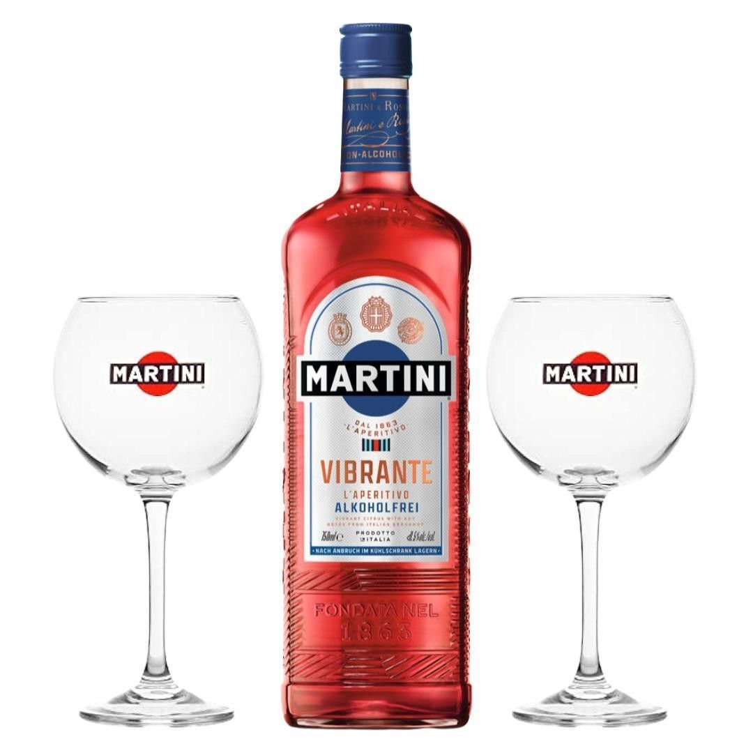Martini Martini Aperitiv - Martini Vibrante Alkoholfrei 0,75L + 2 Martini Ballon Gläser