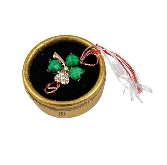 Martisor Märzchen Charm Anhänger als Kleeblatt aus Metall 2 in Gold Box 251