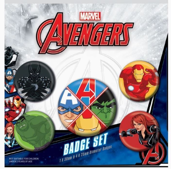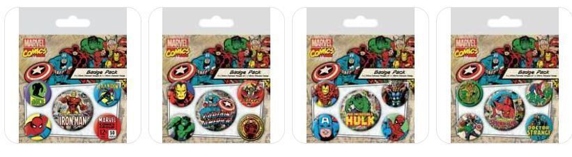 Marvel Comics Anstecker Buttons 5er-Pack. Iron Man Hulk Spider-Man Cpt. America
