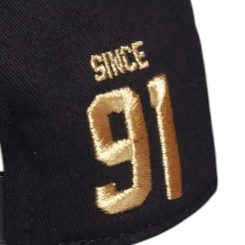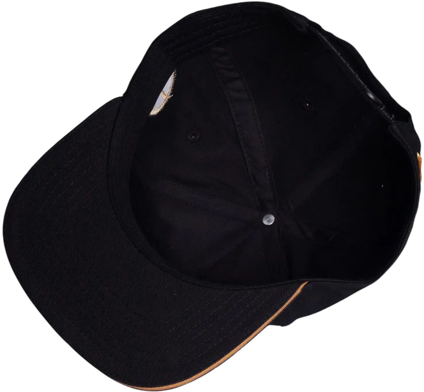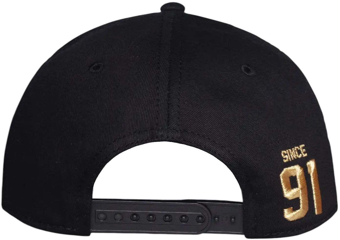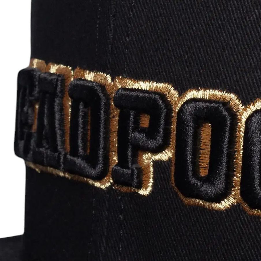 Deadpool Snapback Cap. Schwarze Marvel-Kappe mit Comic-Design, 3D-Goldlogo