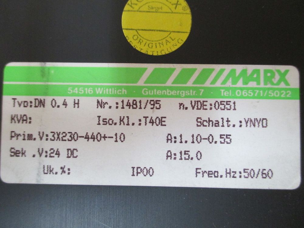 Marx Transformator DN 0,4 H Trafo pri. 3x230-400V + / - 10% sek. 24V DC T9/671