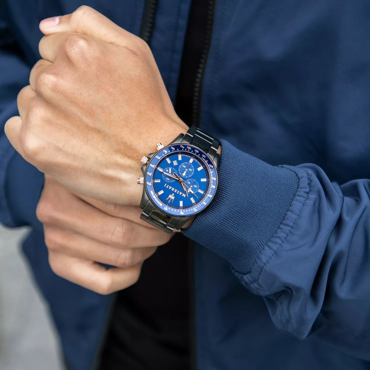 Maserati Sfida R8873640001 chronograph 44mm Herrenuhr Gunmetal Blau