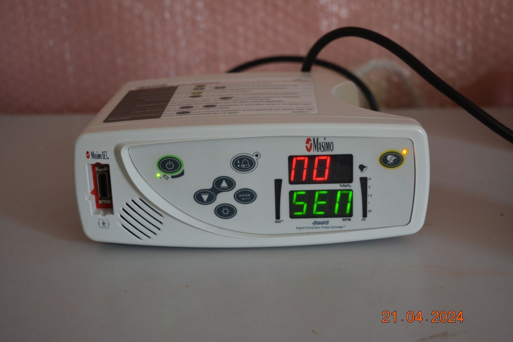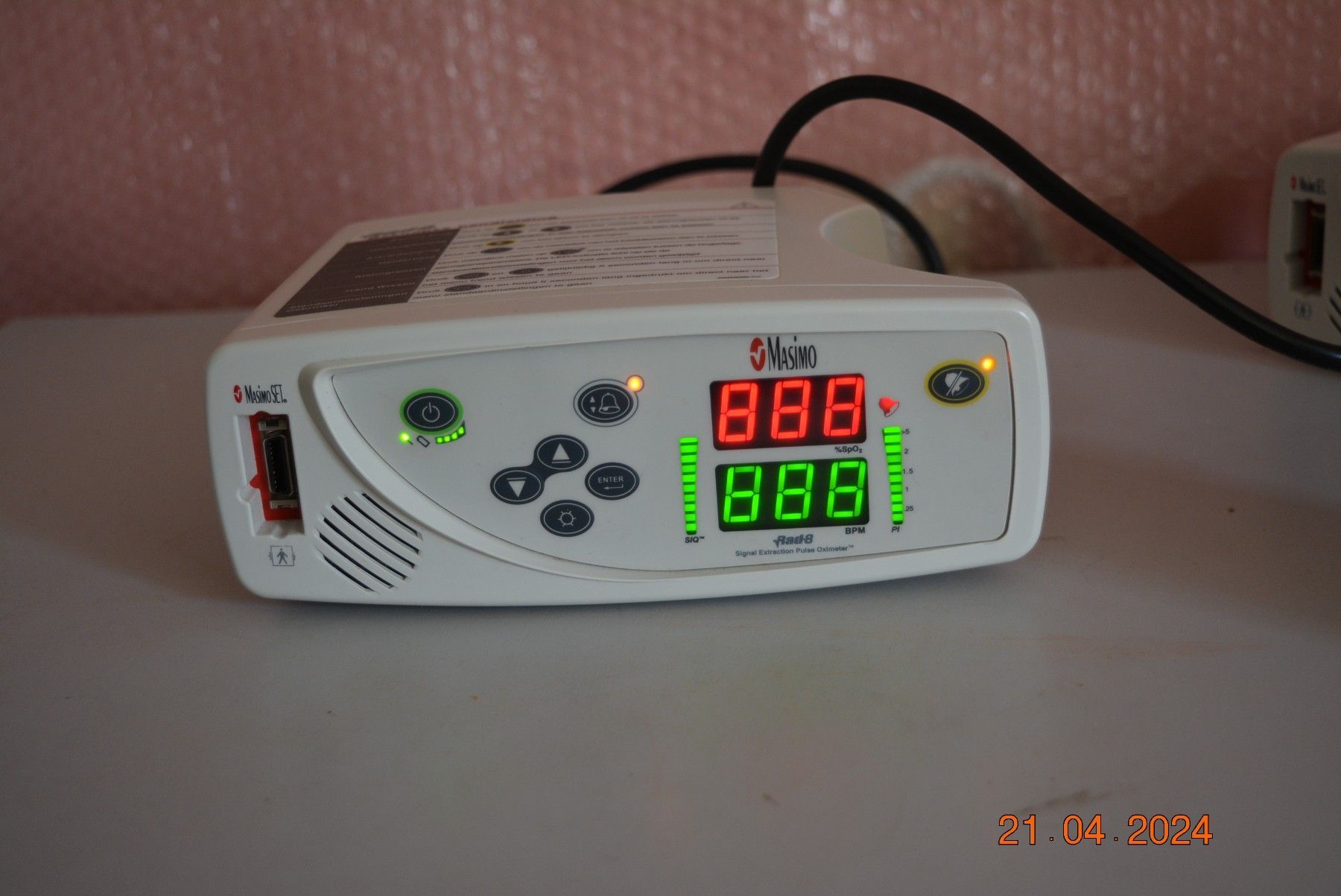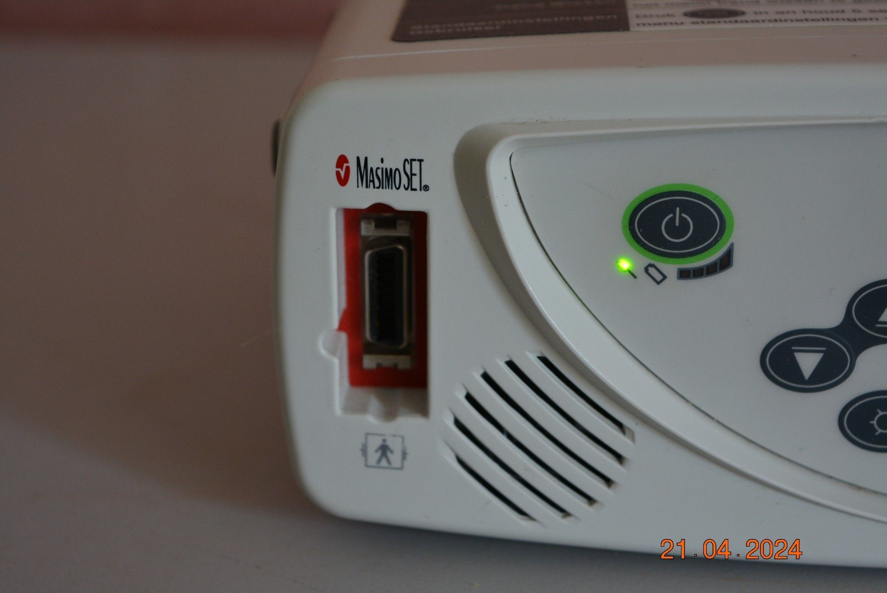 Masimo Rad 8 Signal Extractions Pulse Oximeter (NL) gebraucht voll funktionsfähig gereinigt und desinfiziert ohne Netzkabel o. Netzteil ist im Originalzustand, CE geprüft geliefert wie auf den Fotos zu sehen ist, kein weiteres Zubehör soweit es Fehler oder Defekte gibt wären die oben beschrieben und
