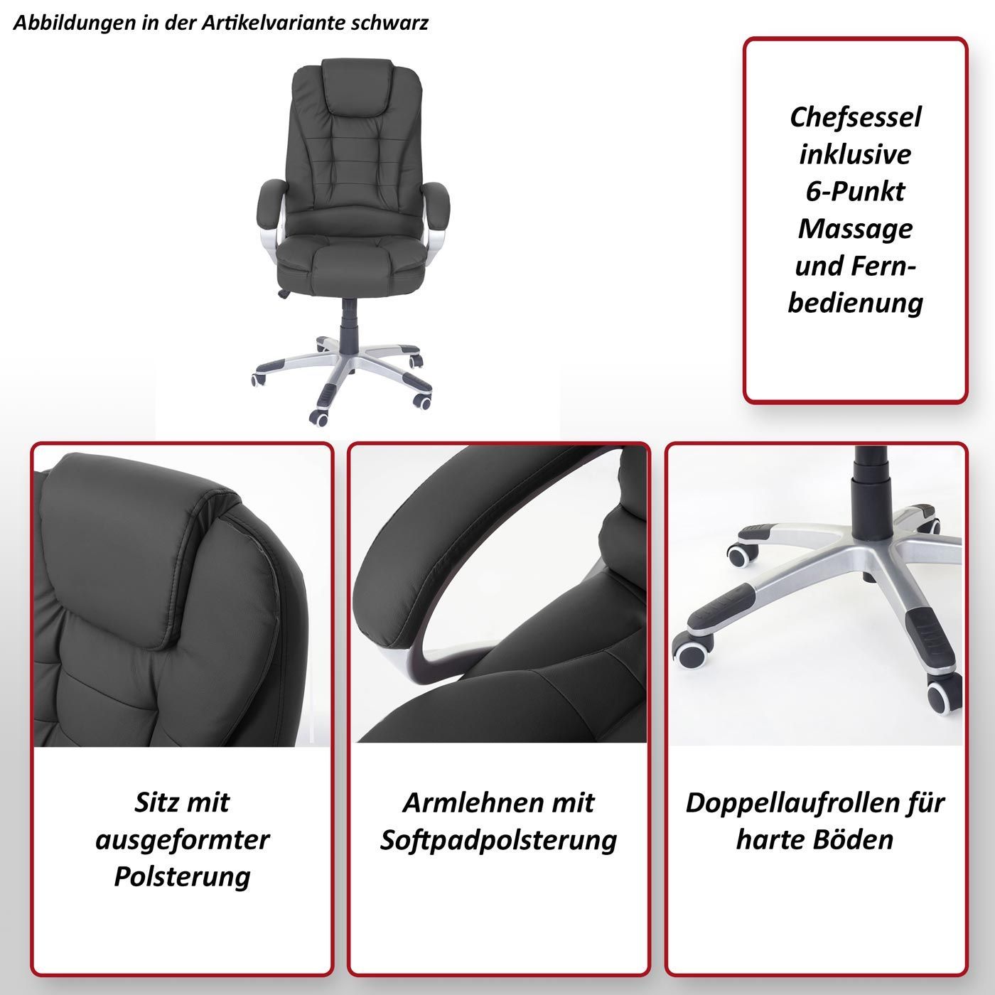 Mendler Massage-Bürostuhl Blackburn, Massagestuhl Drehstuhl Chefsessel