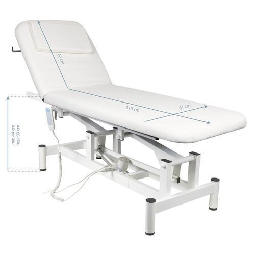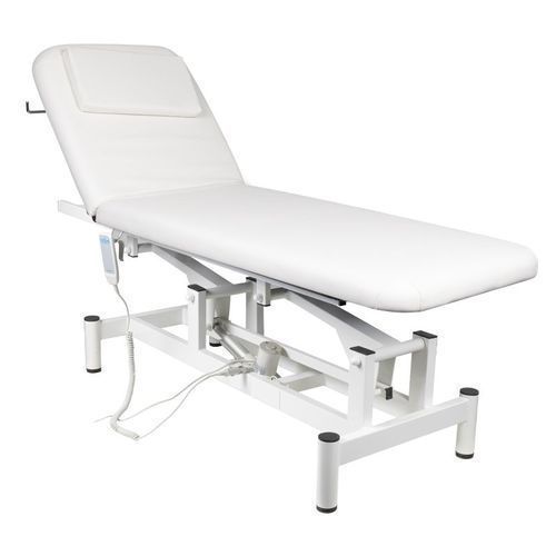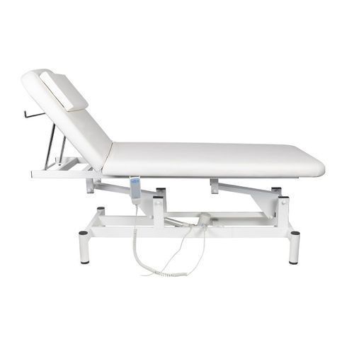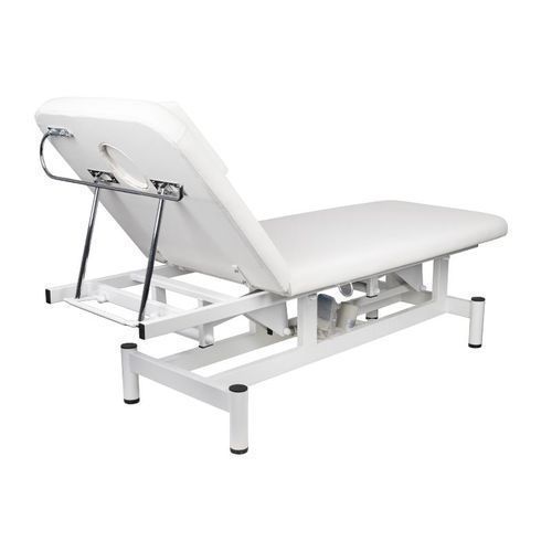 Diese Liege ist besonders für physiotherapeutische Behandlungen und Schönheitssalons geeignet. Sie ist mit einem Motor ausgestattet. Die Höhe wird dadurch elektrisch eingestellt. Die Neigung ist manuell verstellbar. Die Kopfstütze verfügt über einen Gesichtsausschnitt. Die Liege hat eine äußerst sta