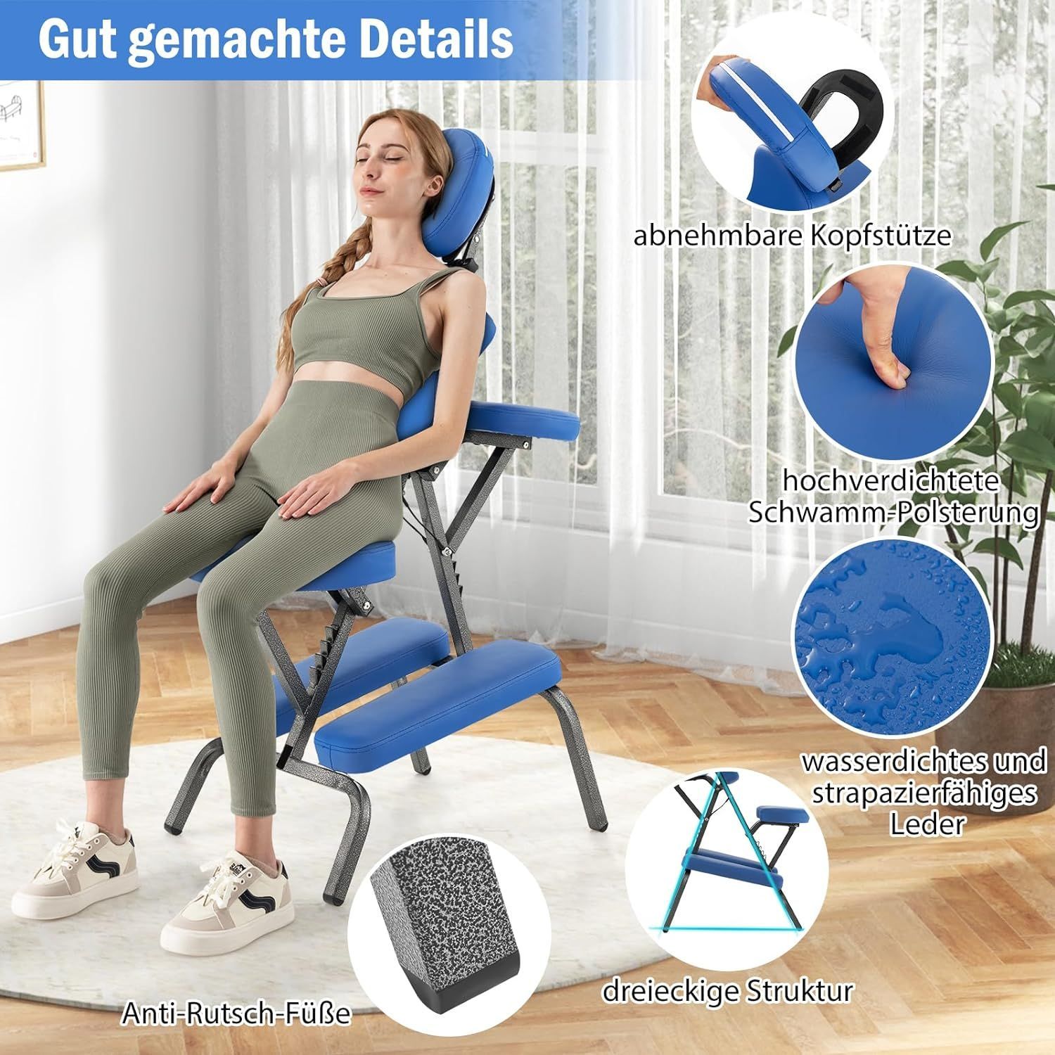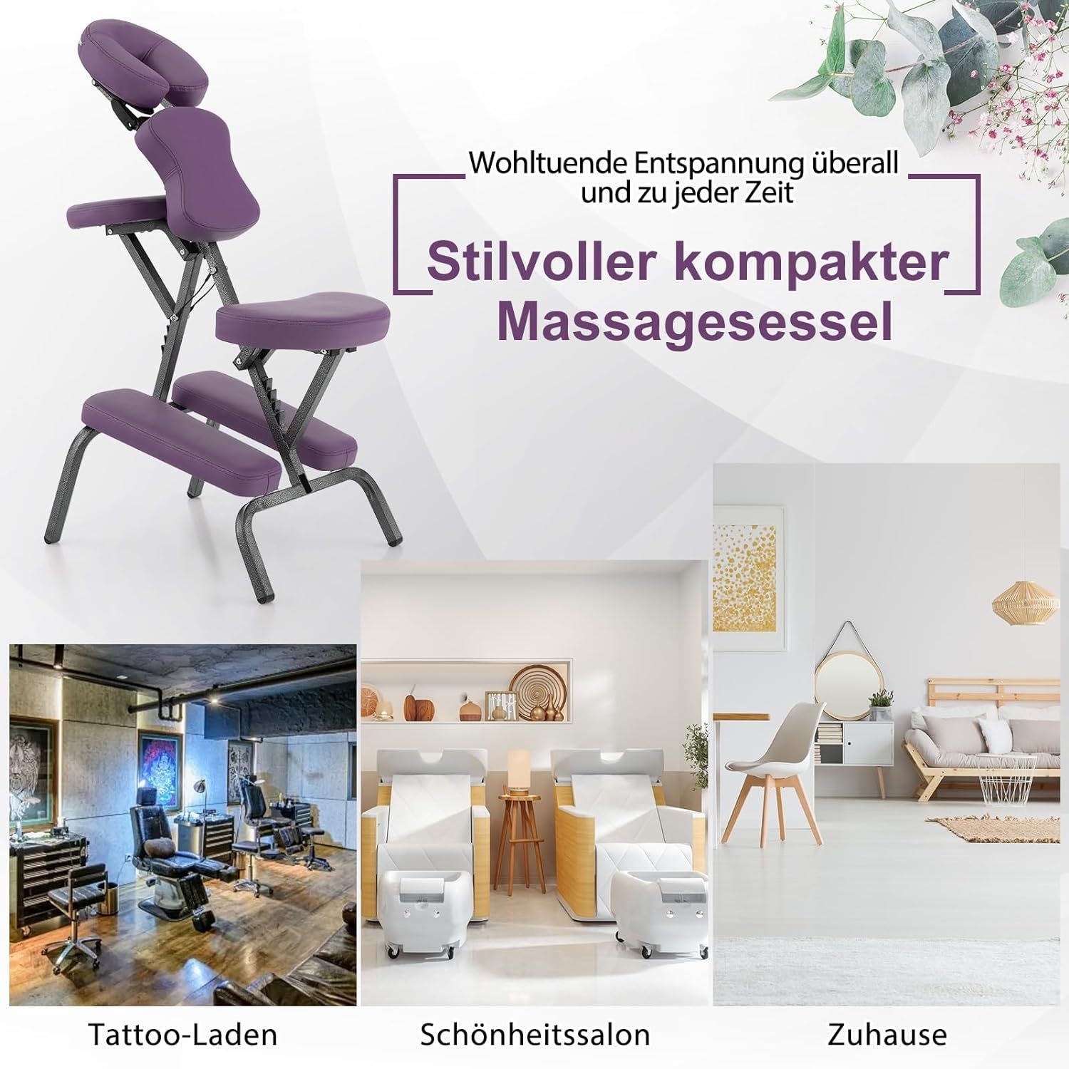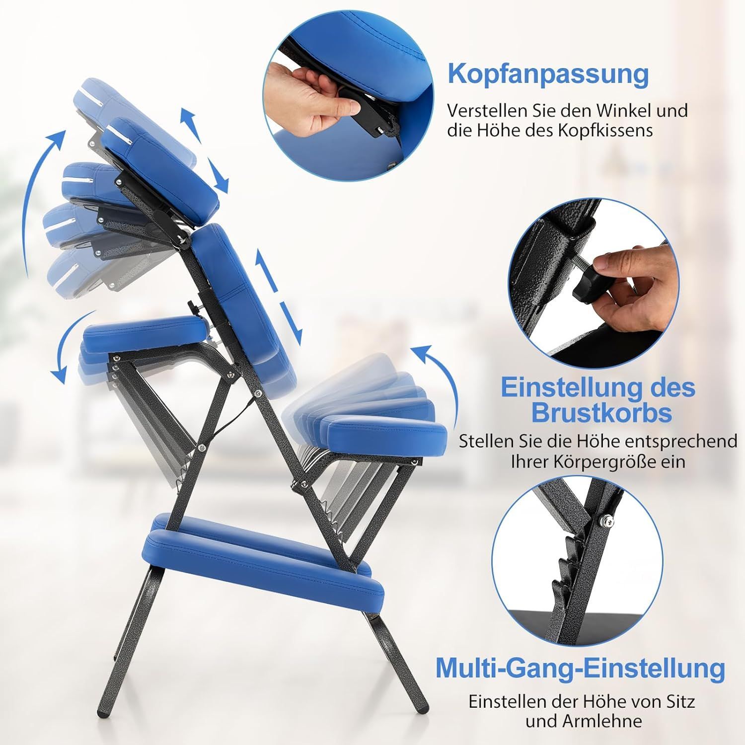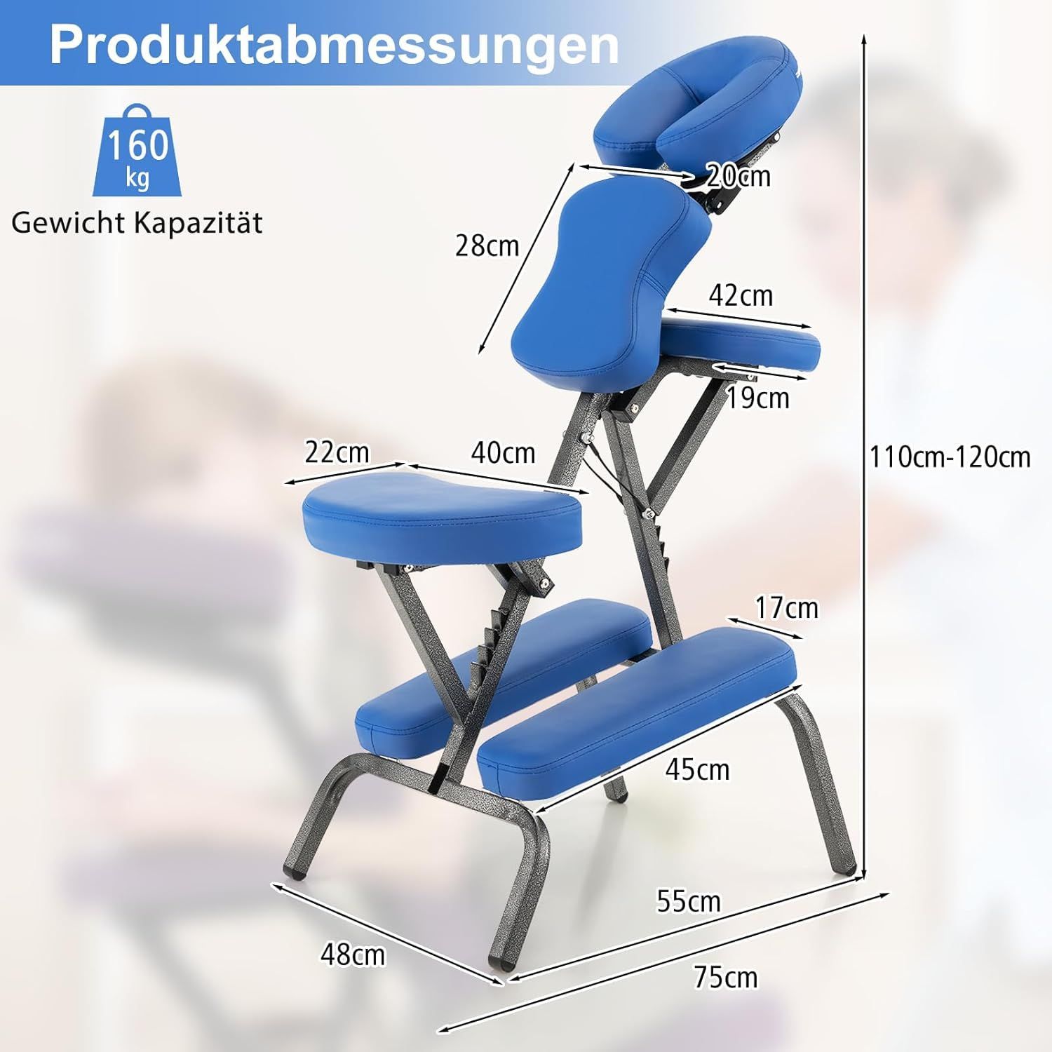 Massagestuhl klappbar, Tattoostuhl höhenverstellbar 110-120cm, Therapiestuhl tragbar