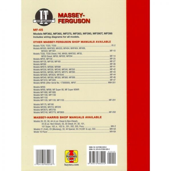 Massey Ferguson MF362 MF365 MF375 MF383 MF390 Traktor Reparaturanleitung I&T